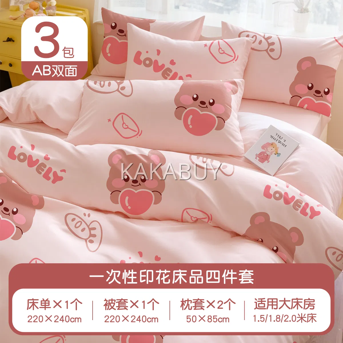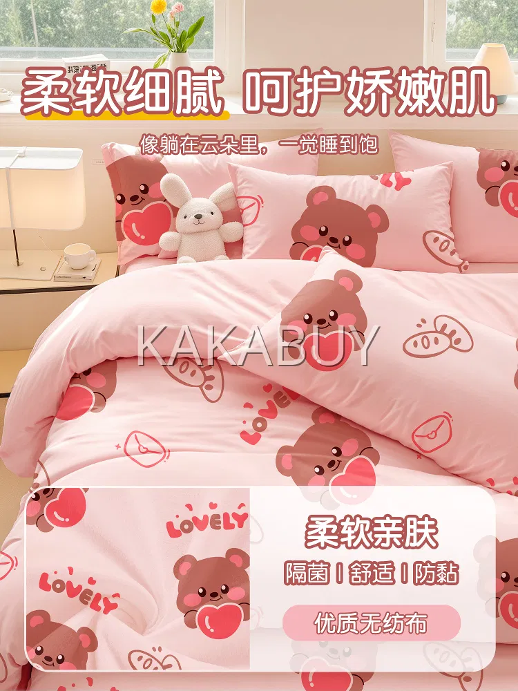 巴迪高 加厚一次性印花床品 爱心熊