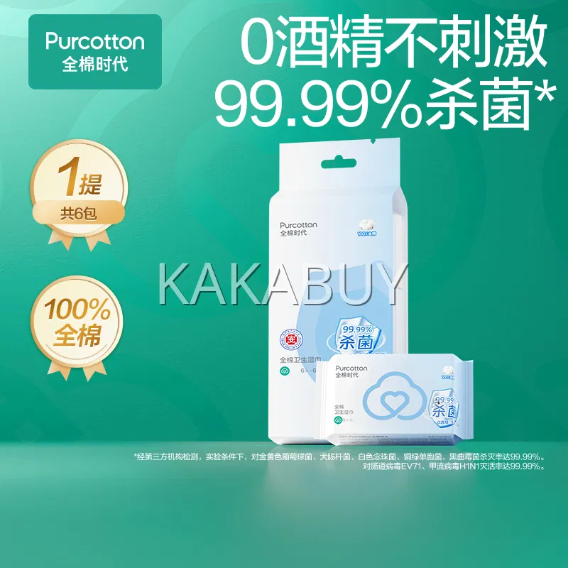 保质期2026-03-14 【6盒】Purcotton全棉时代 一次性酒精消毒棉片 6*6cm 100片*6盒