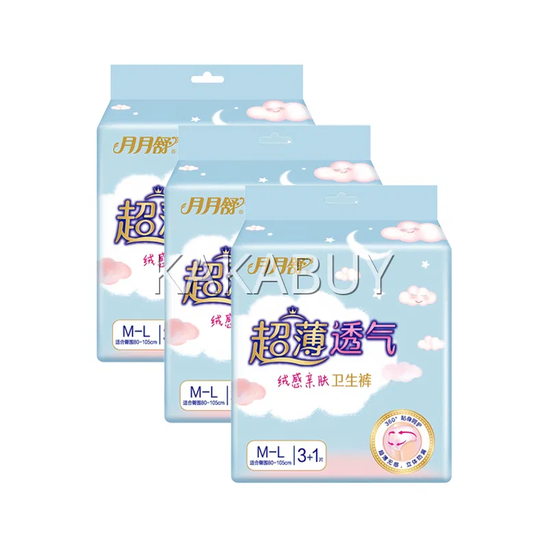 【3包·12片】月月舒 超薄透气绒感亲肤卫生裤 M-L码 4片*3包