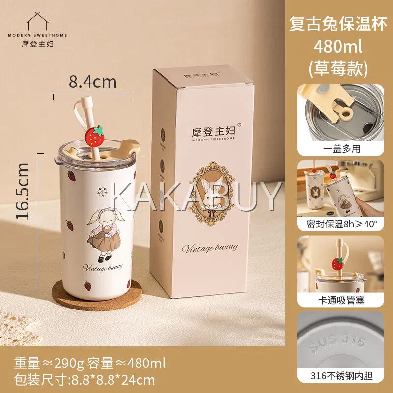 摩登主妇 复古赫拉兔系列 双饮保温杯 500ml