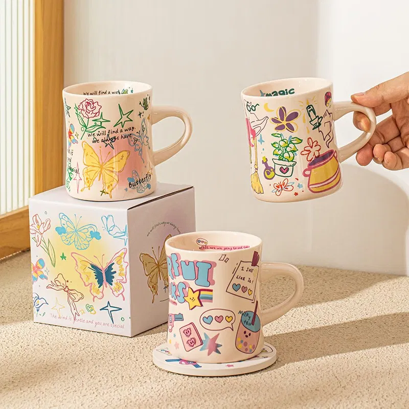 摩登主妇 网红ins浮雕奶茶杯 400ml 多款选