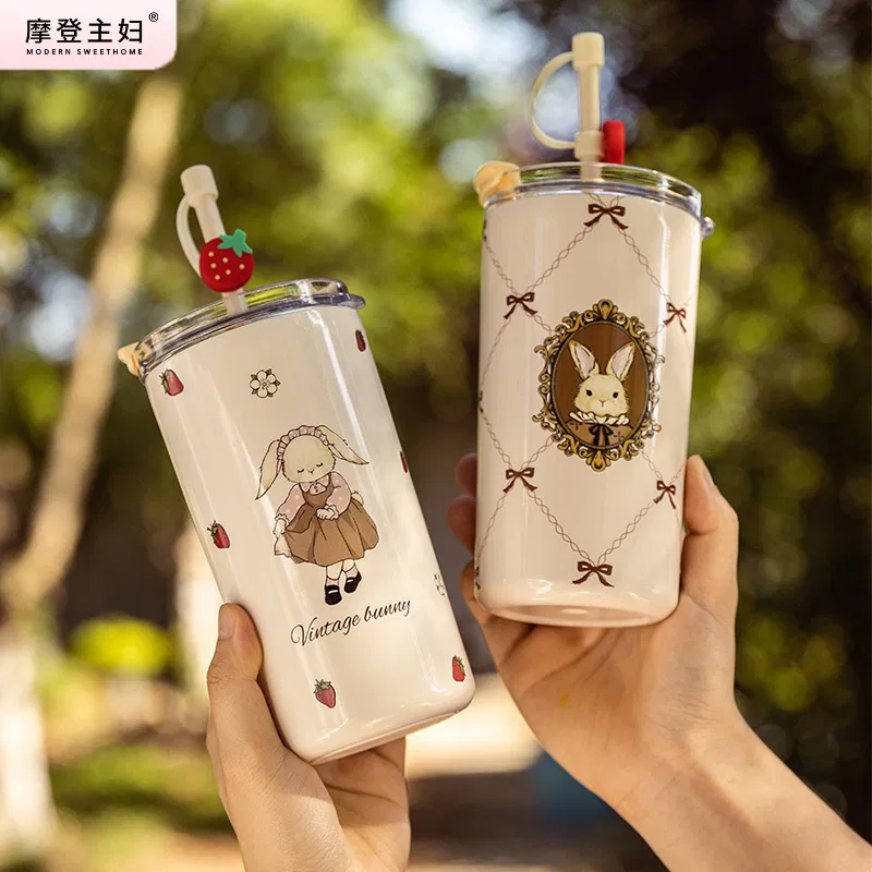 摩登主妇 复古赫拉兔系列 吸管保温杯 480ml
