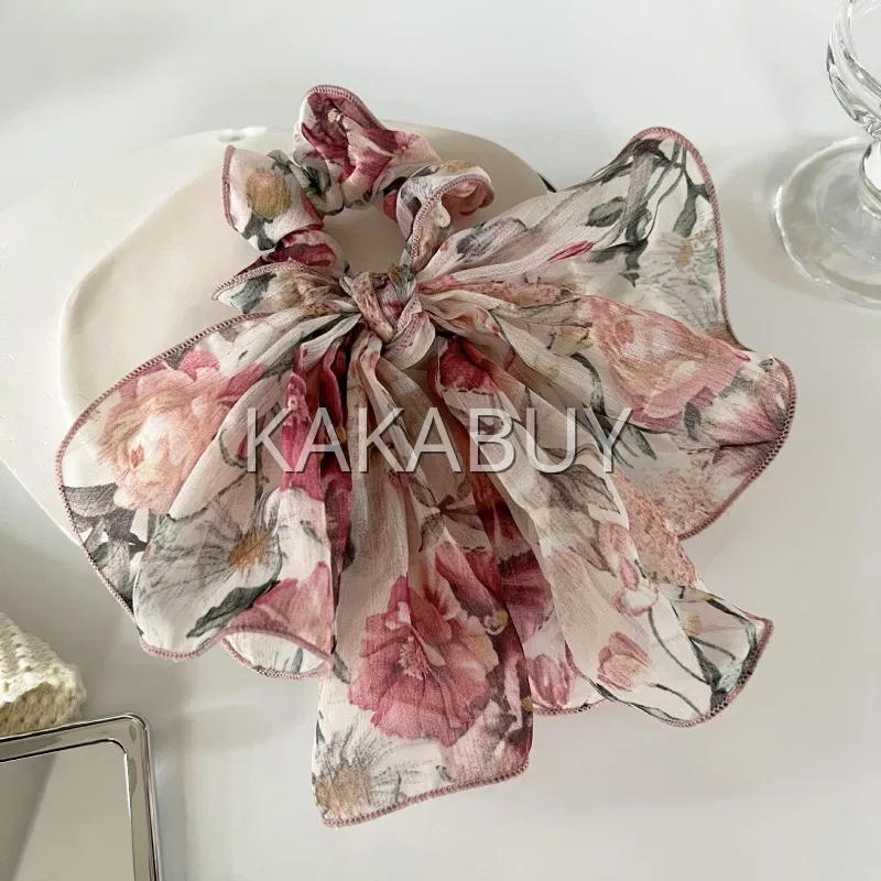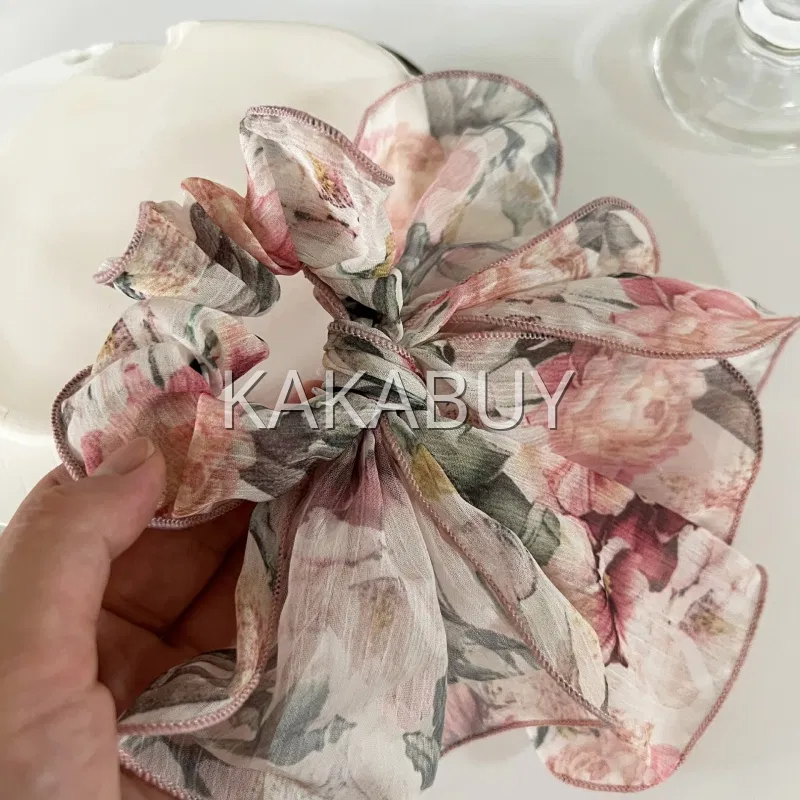 法式油画感碎花方巾发圈 1个 多色选