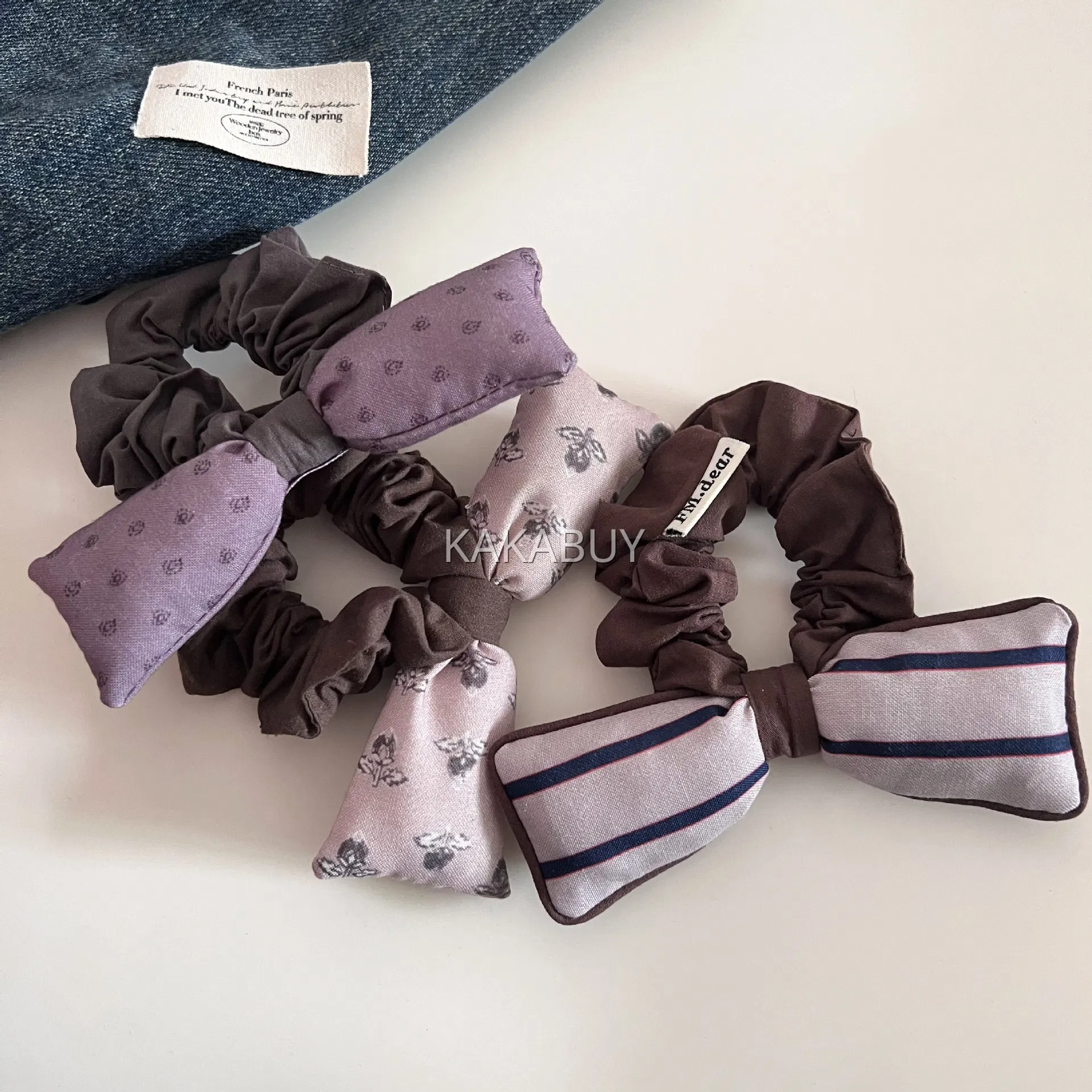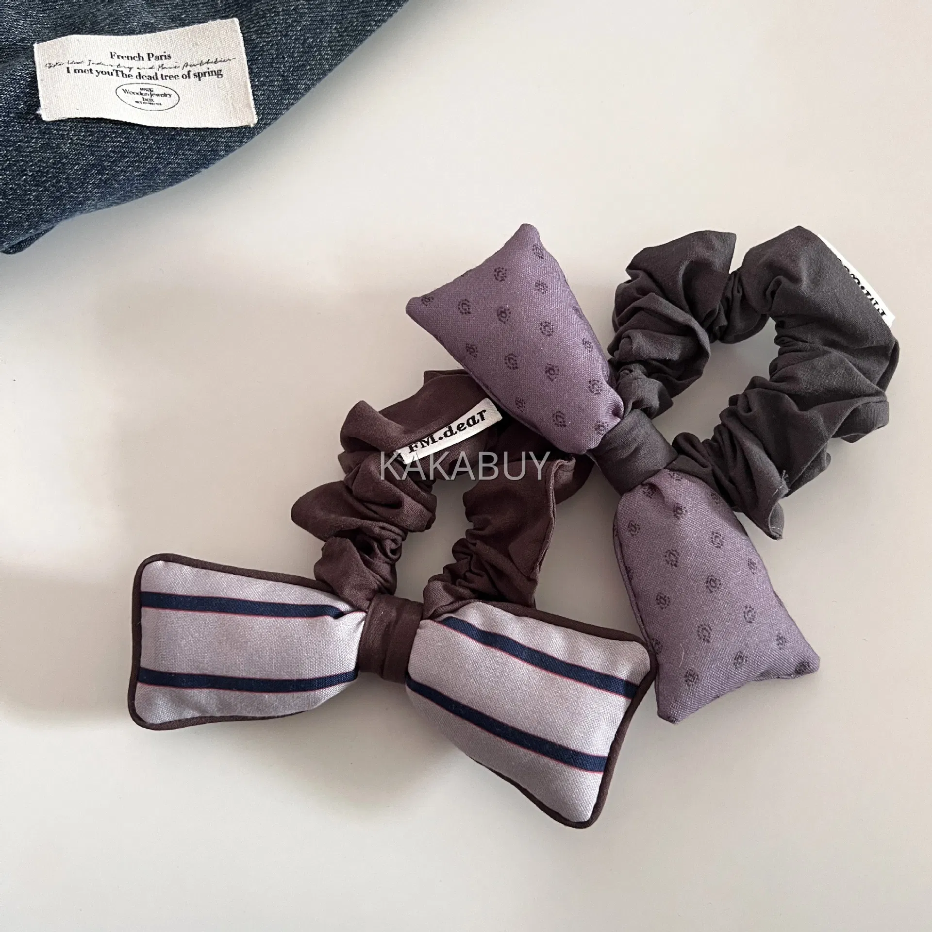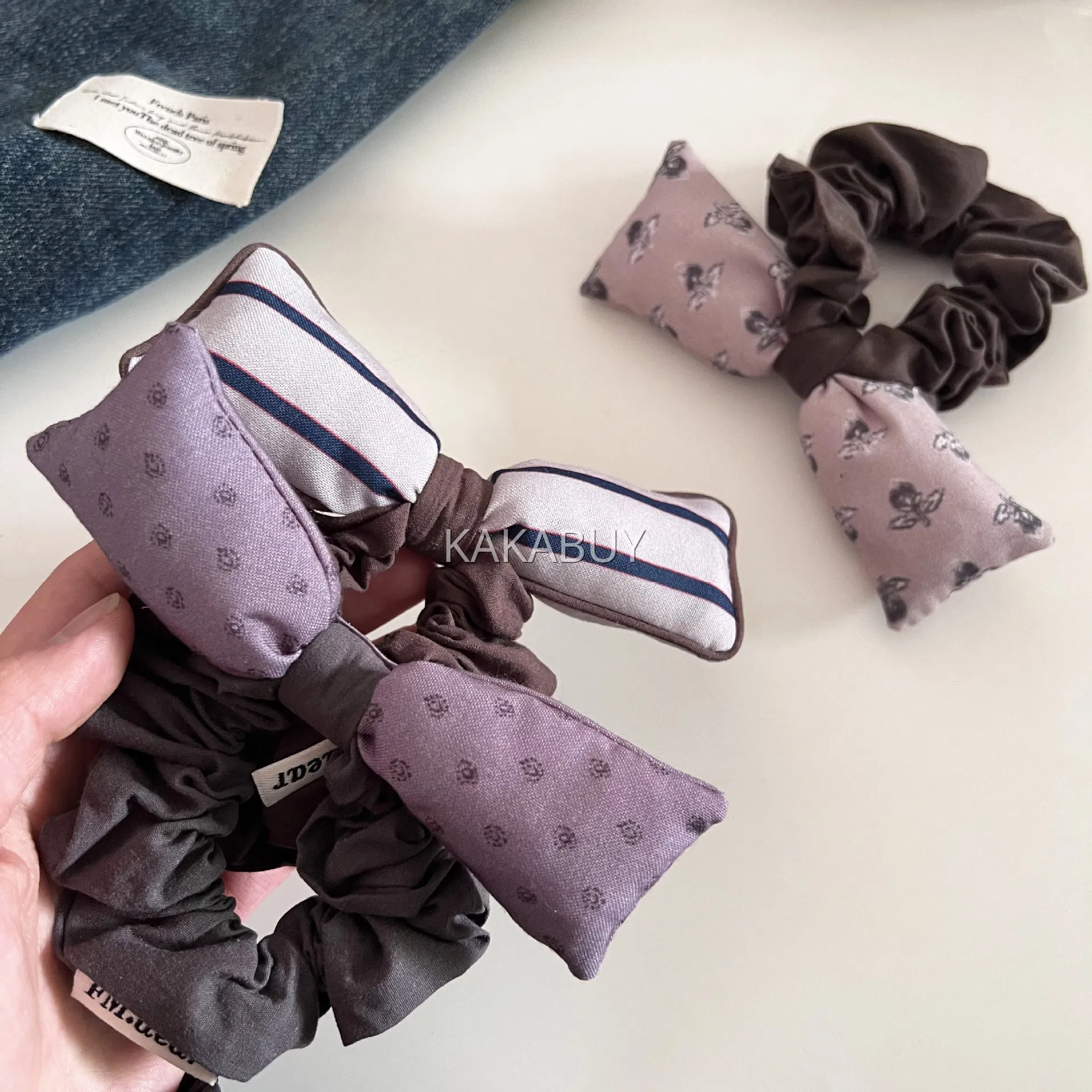 清新蓝色条纹刺绣发圈 1个 多款选
