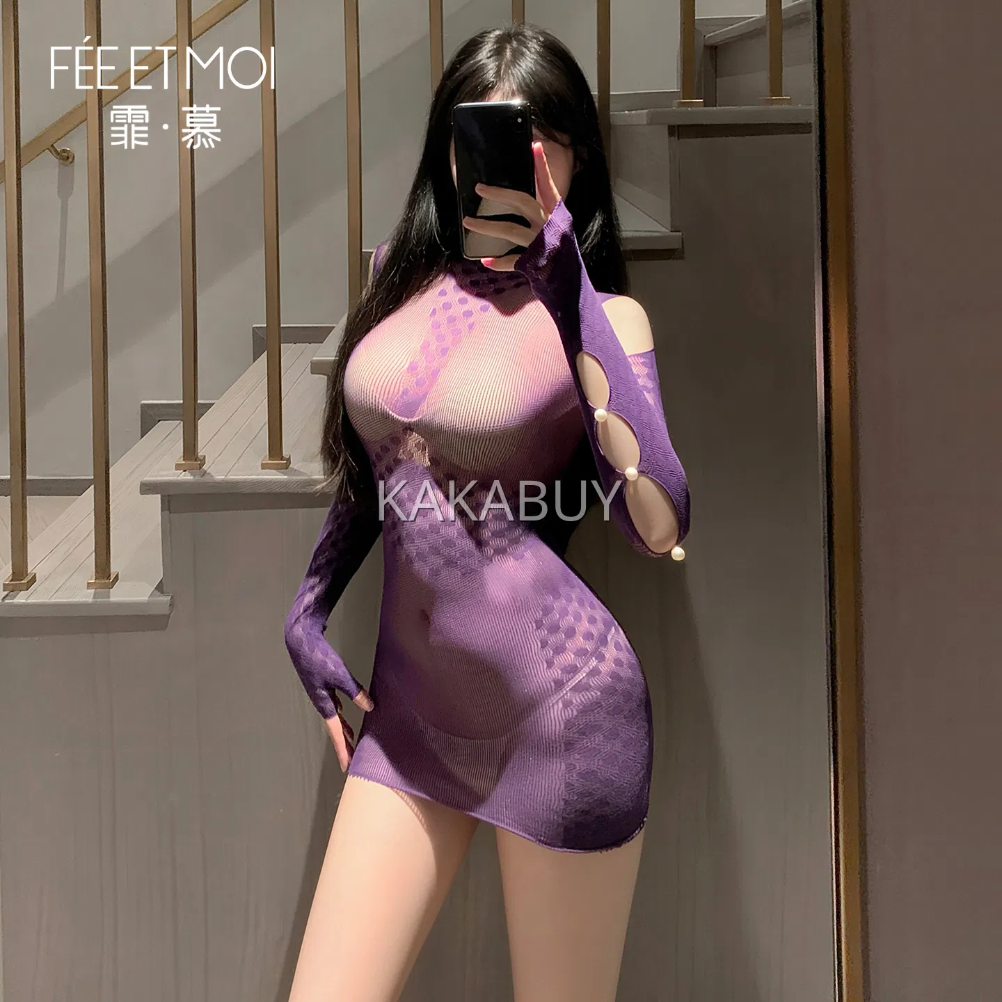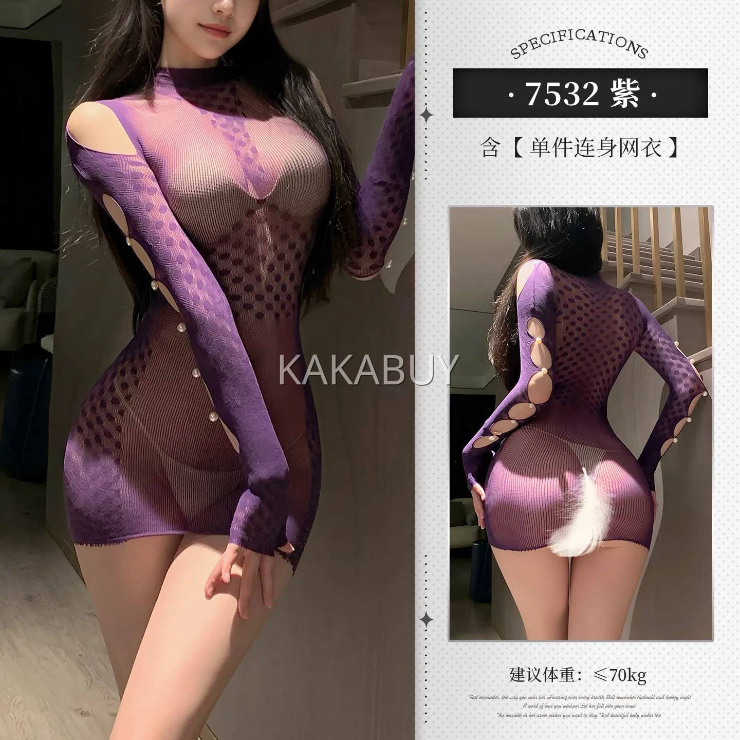 霏慕 性感镂空可撕连身网衣 7500