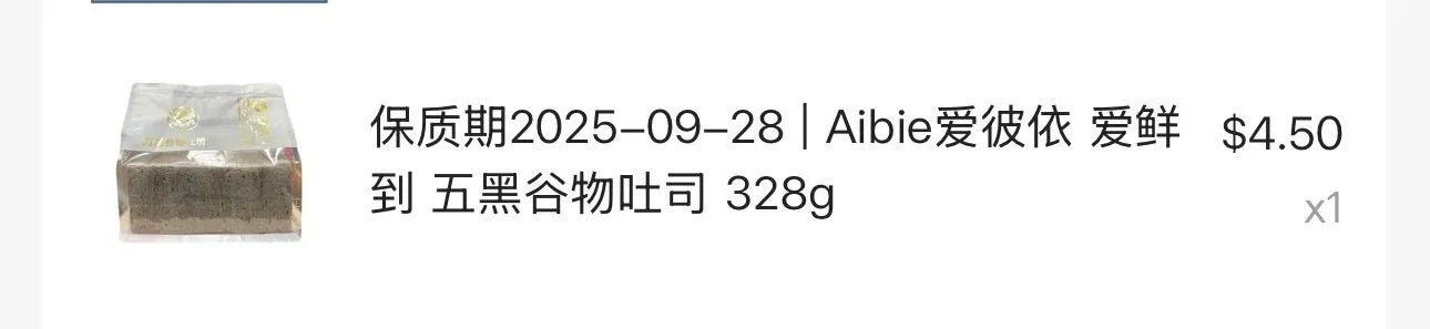 保质期2025-11-15 | Aibie爱彼依 爱鲜到 五黑谷物吐司 328g