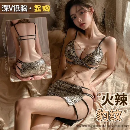 霏慕 镂空露胸豹纹网衣制服裙 ZY90+7219豹纹黑长筒丝袜