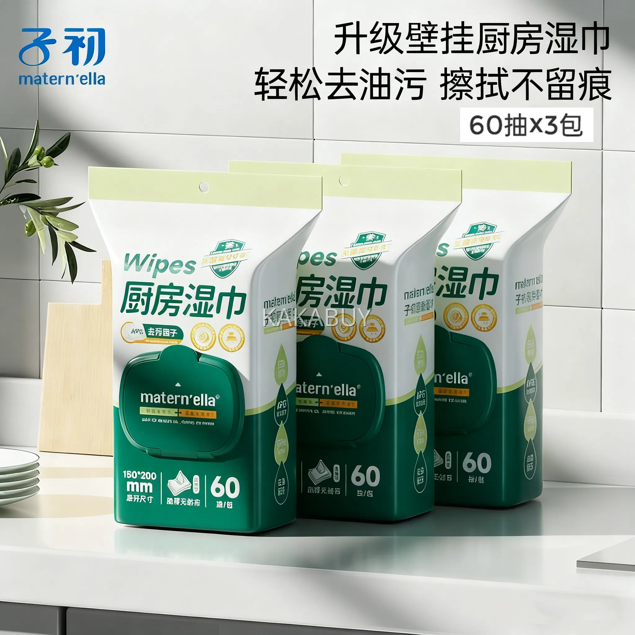 【3包】matern'ella子初 玻尿酸洗脸巾 200*200mm 60抽/包*3