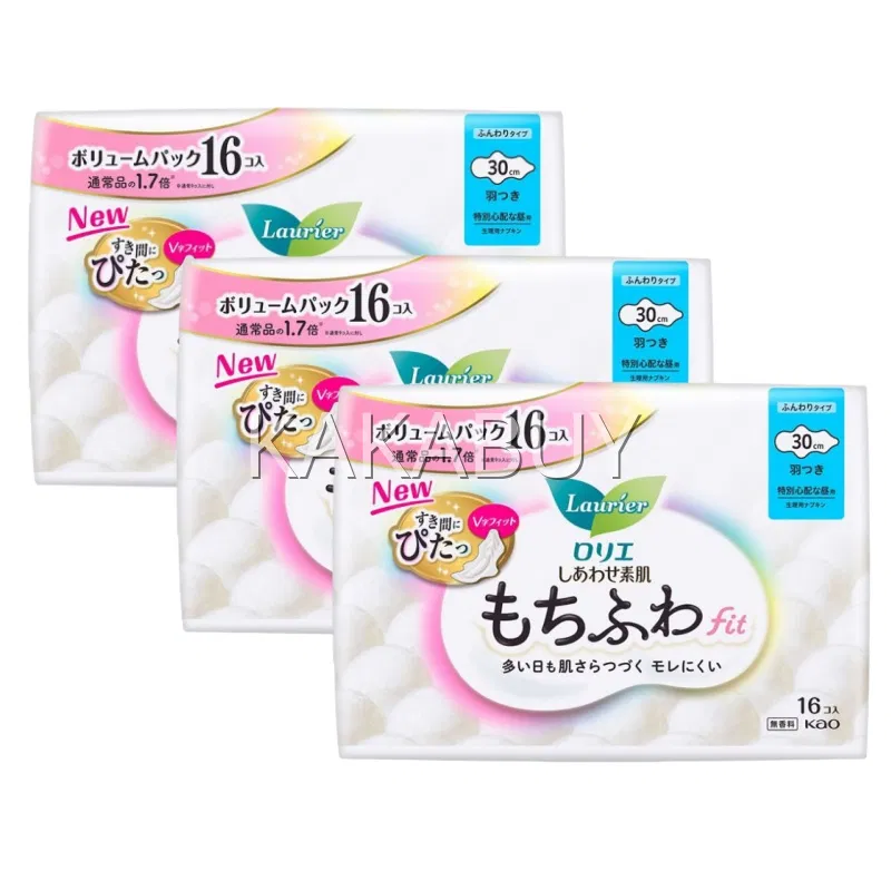 【增量版】日本KAO花王 LAURIER乐而雅 F系列 敏感肌量多V形尾翼日用卫生巾 30cm 16片