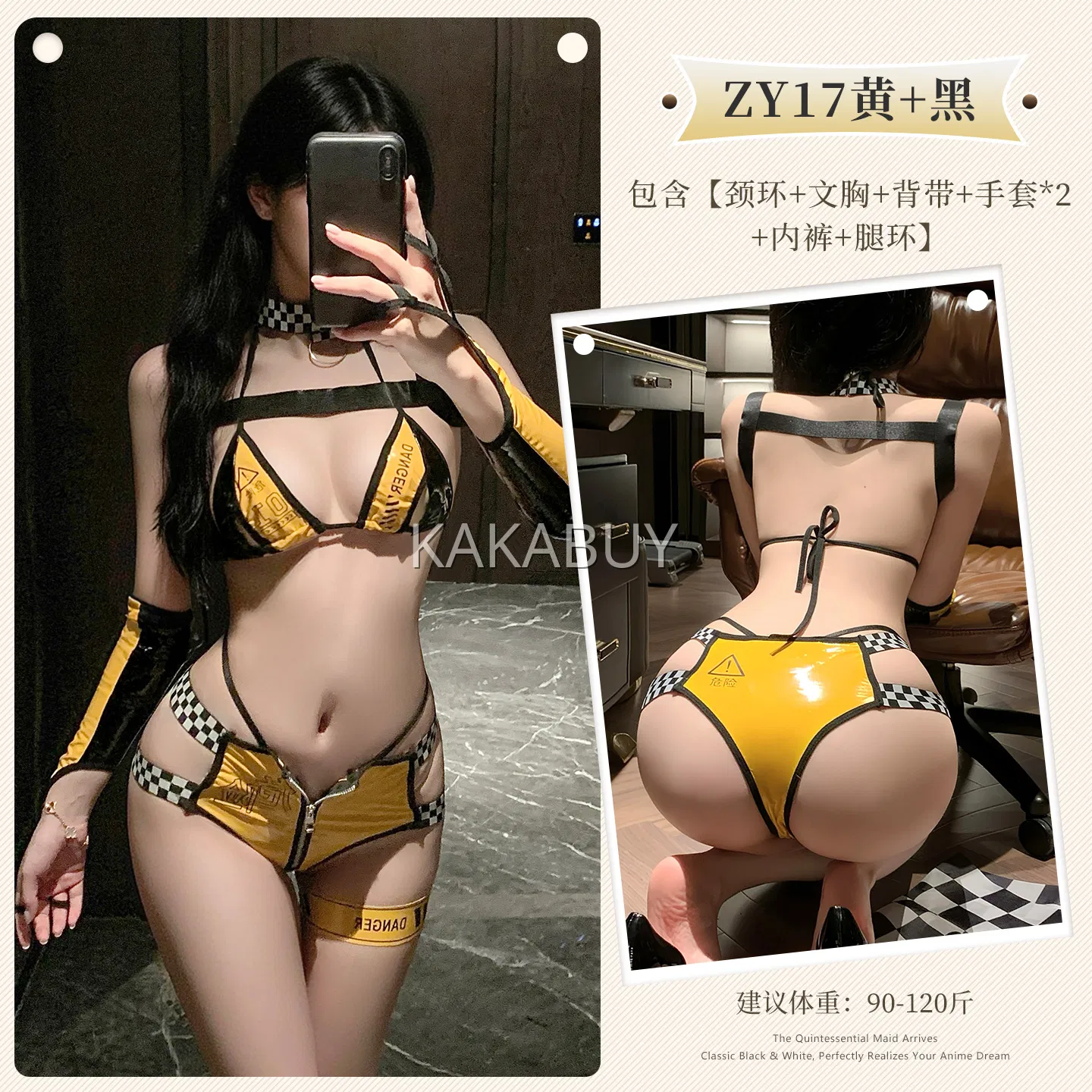 霏慕 深夜邀约美式店员套装 ZY131黄白+7301黑手撕袜