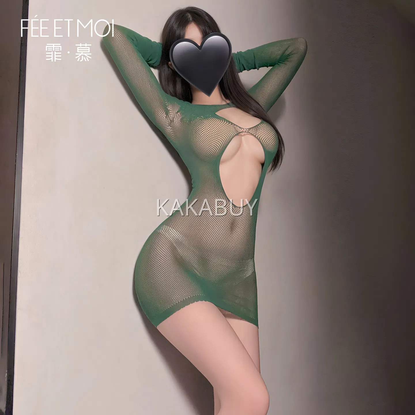 霏慕 蛛网勾心镂空提花连体网衣 7541+7627黑兔耳发箍