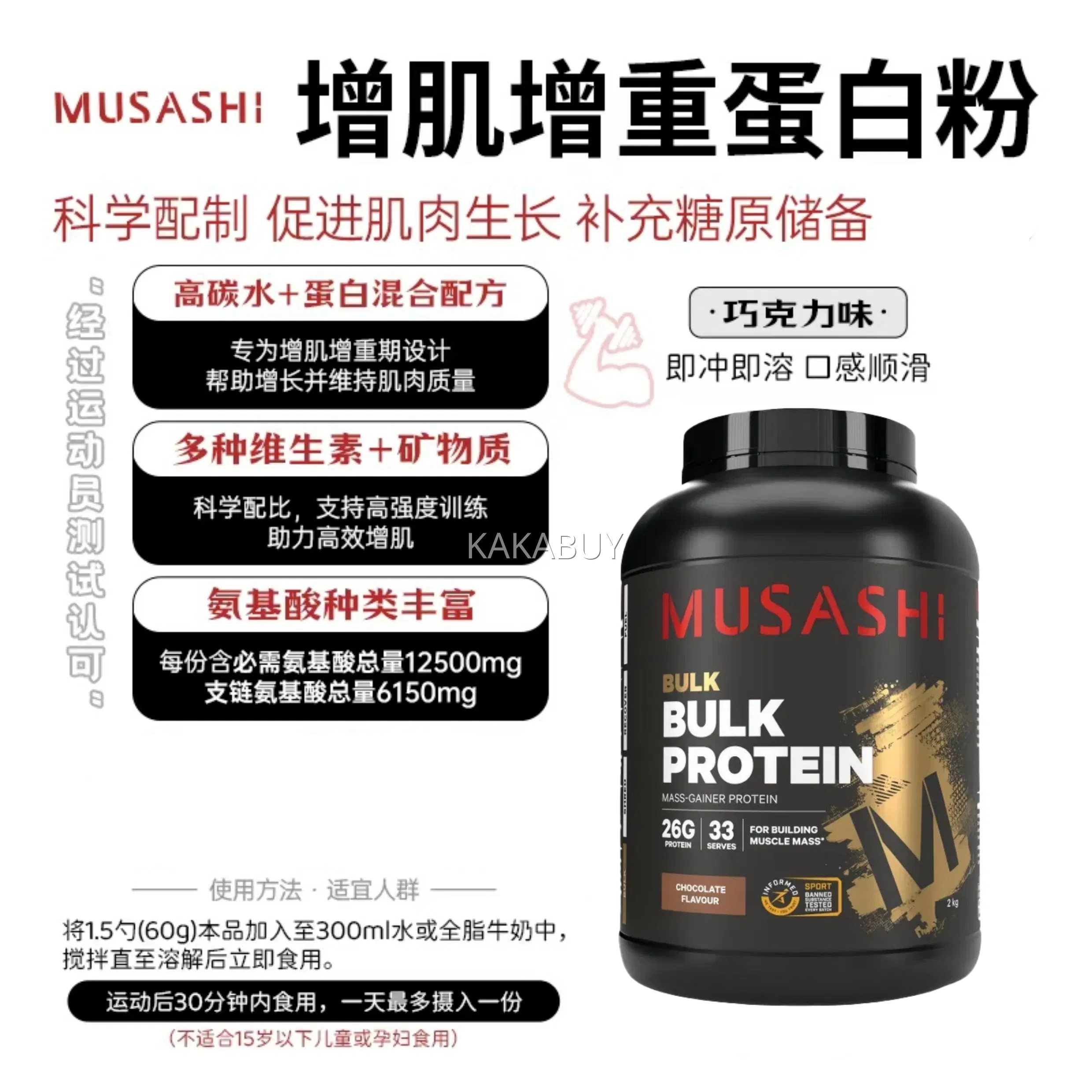 澳洲MUSASHI武飒士 BULK 增肌蛋白粉 巧克力味 2kg