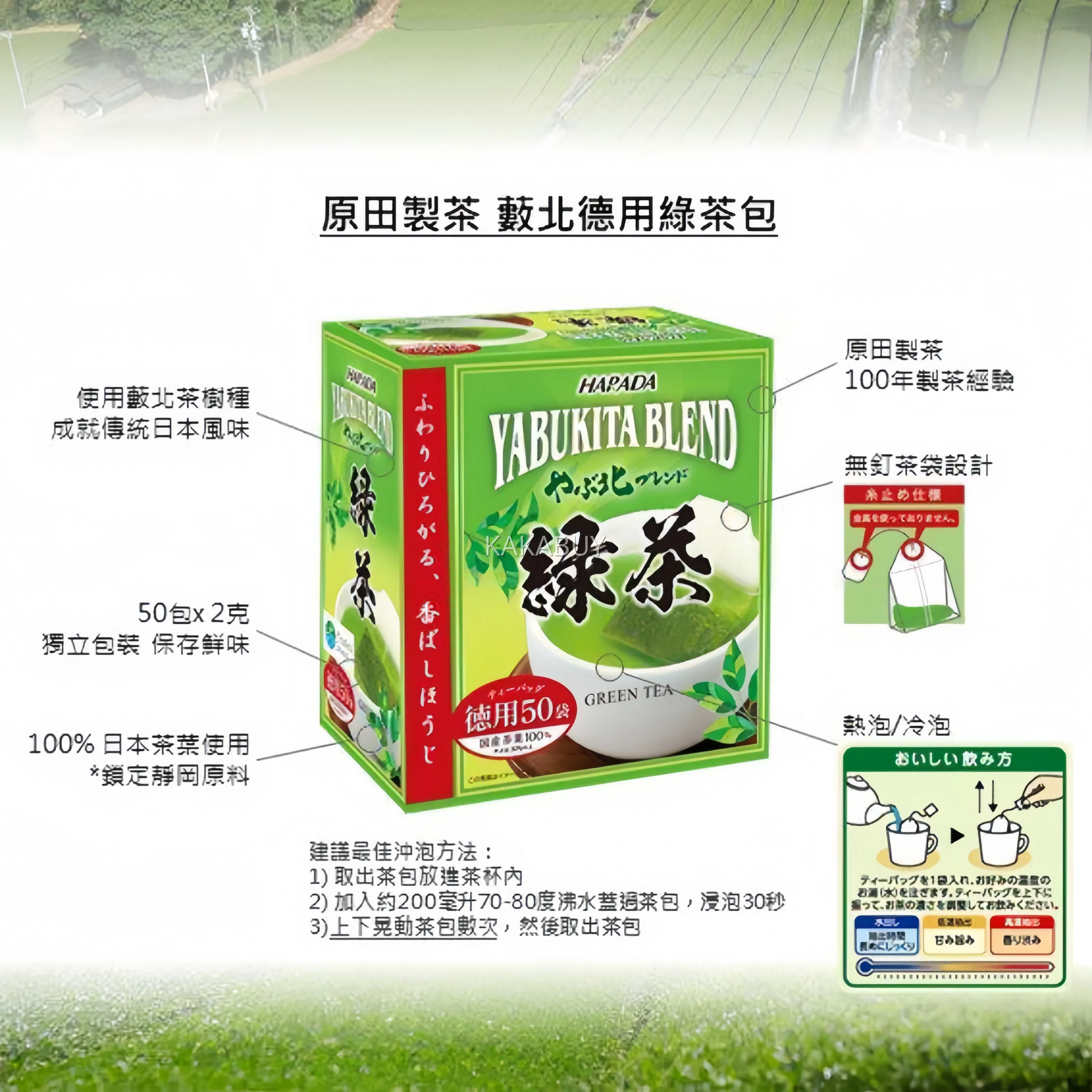 日本HARADA原田制茶 北村德用 绿茶茶包 100g 内含50袋