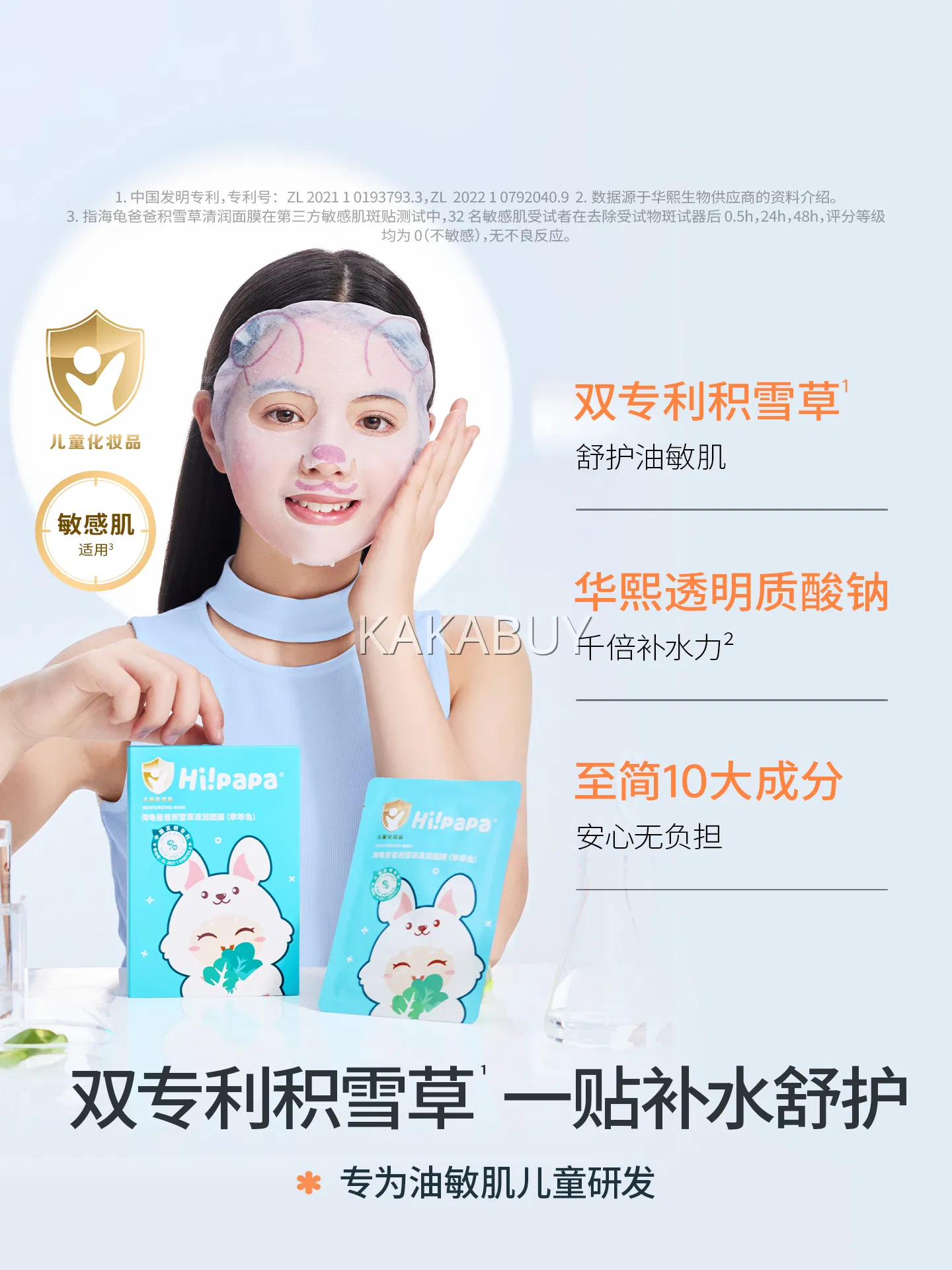 【3盒】Hipapa海龟爸爸 乖乖兔积雪草清润面膜 25ml*5片*3盒