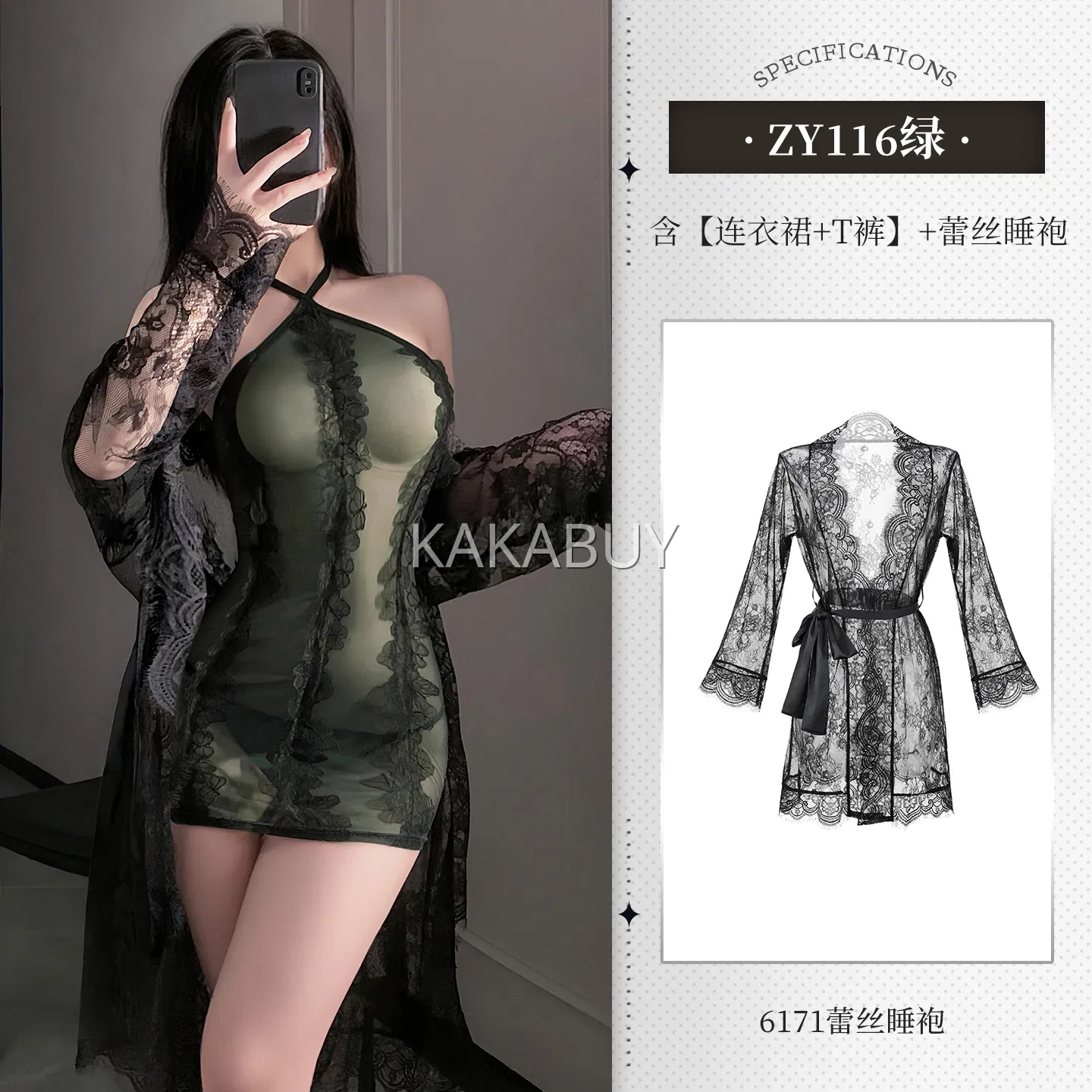 霏慕 x 俏予醉 法式优雅性感蕾丝睡袍 Q22