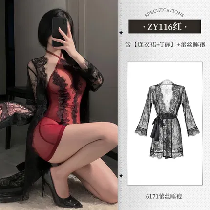 霏慕 法式深V宽袖透视睡袍 ZY69 多色选