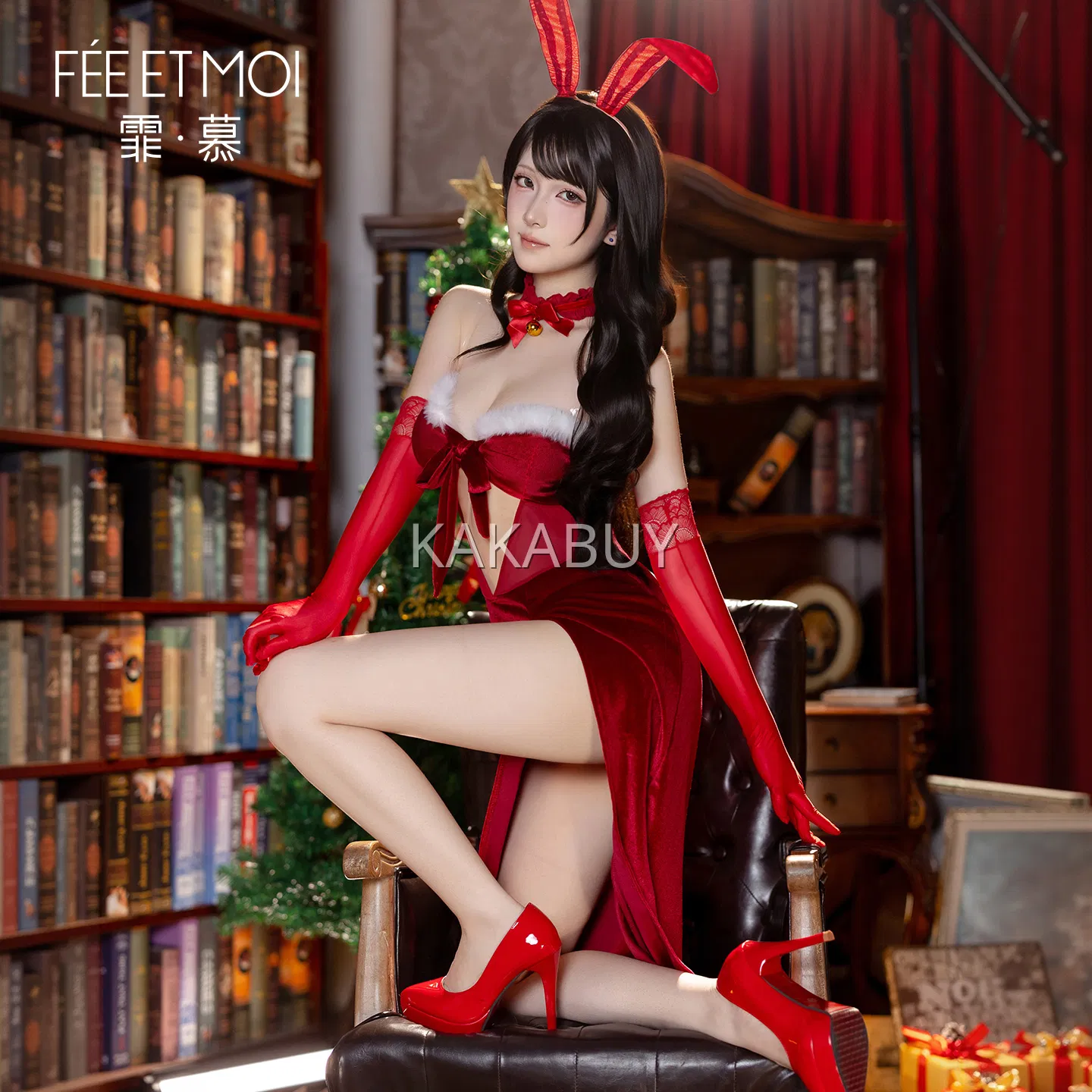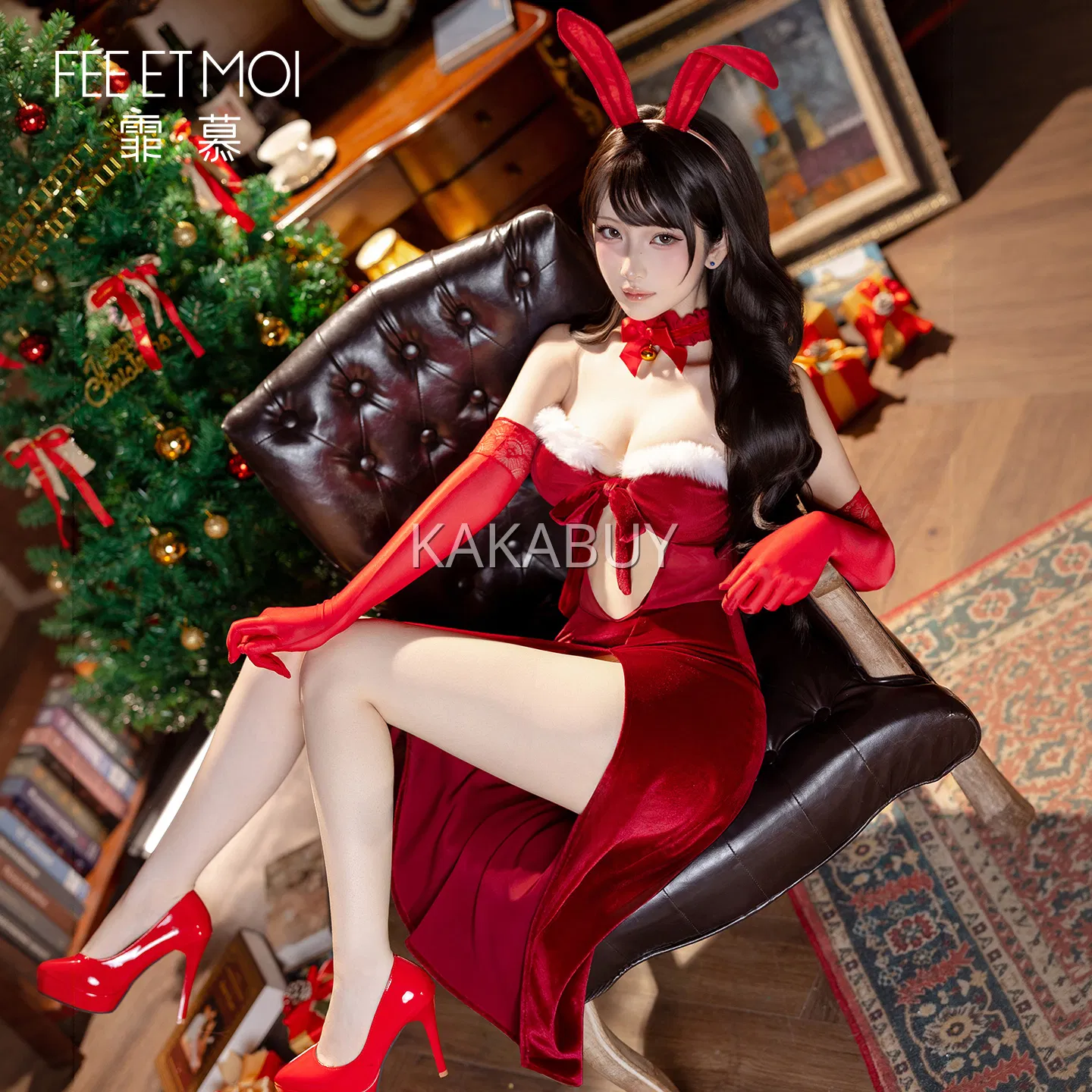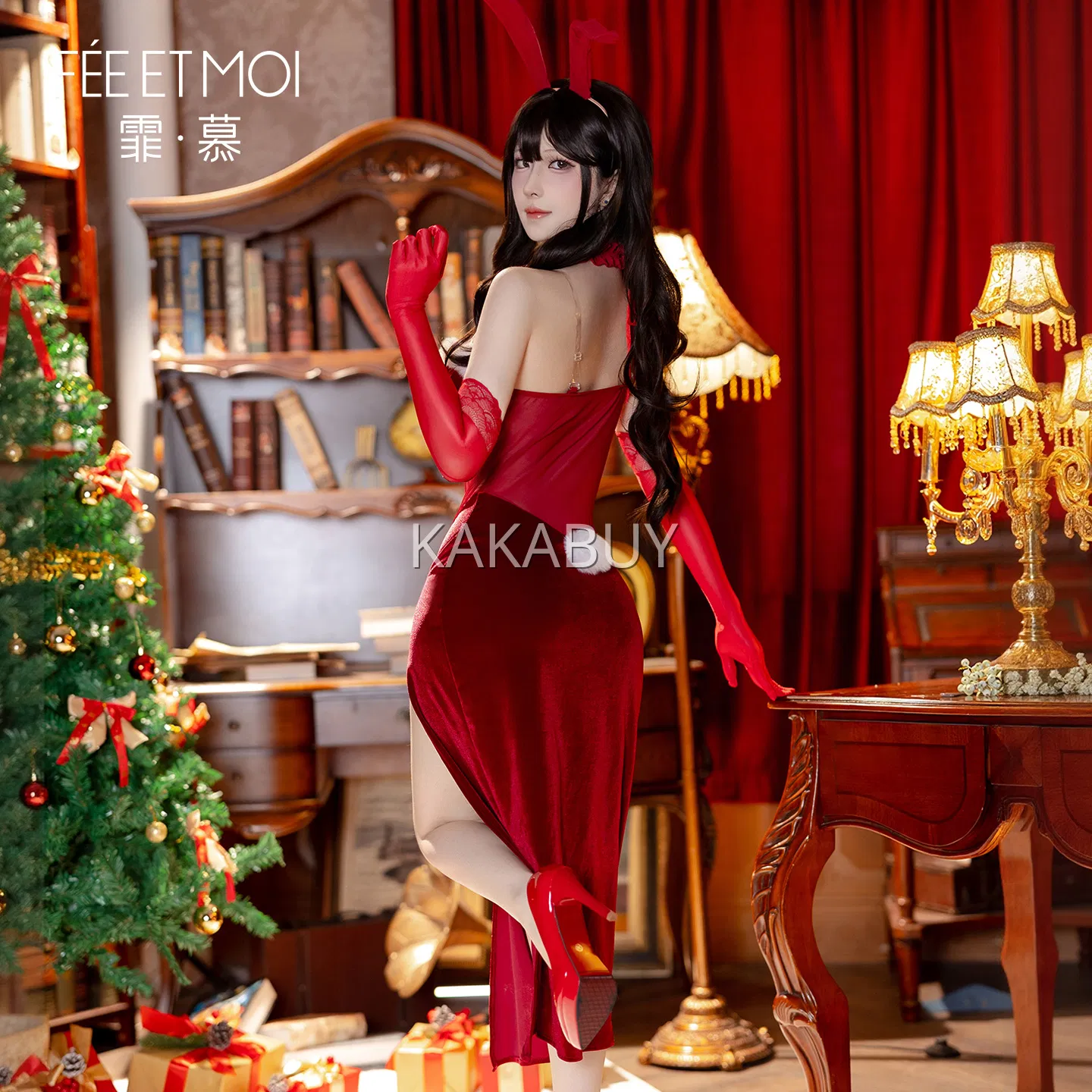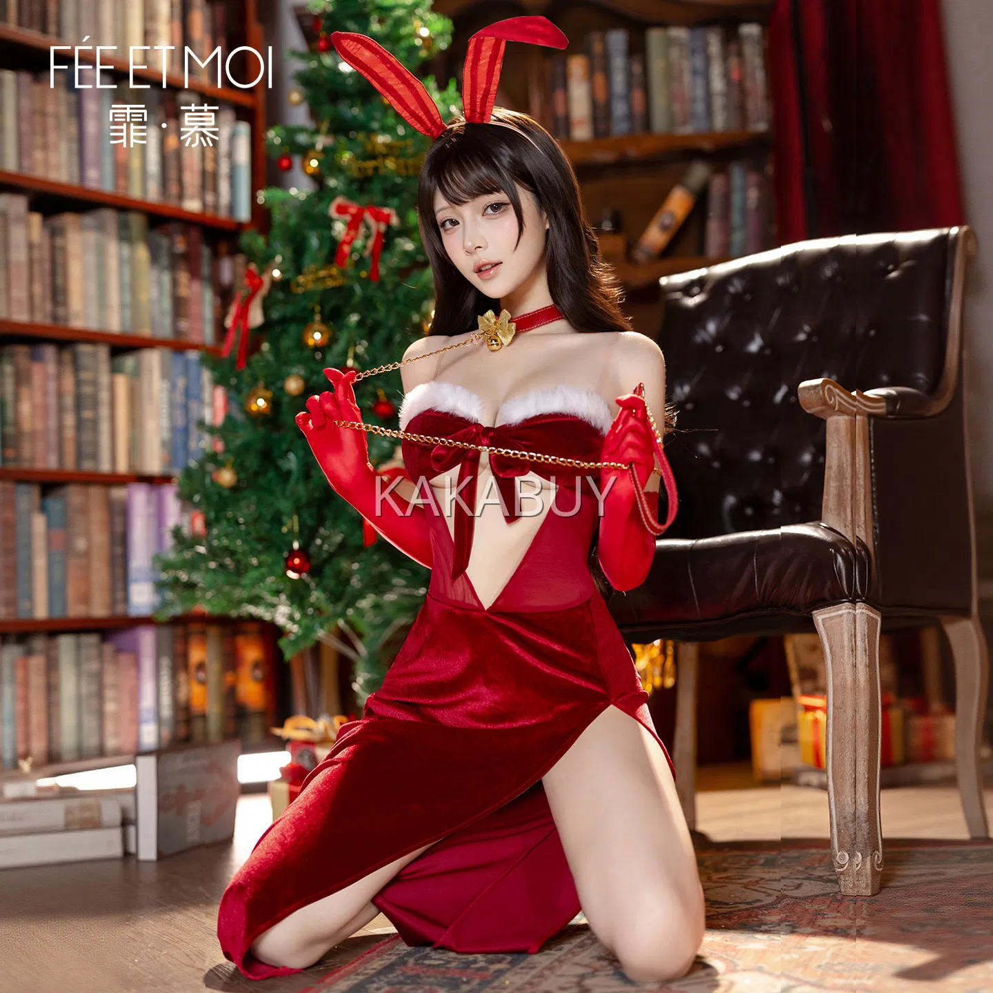霏慕 纯欲麋鹿圣诞响铃套装 ZY152+7201白长筒丝袜