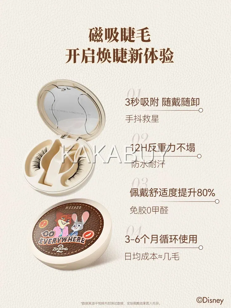 WOSADO悦瞳 x 疯狂动物城 轻感软磁假睫毛 上睫毛 柔丝黑2.0 1对 赠定型凝露
