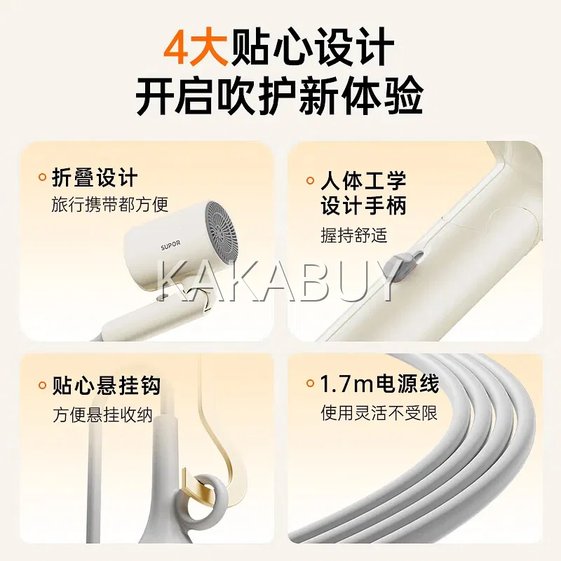 SUPOR苏泊尔 便携可折叠负离子吹风机 米橙色 EHDL-F844A