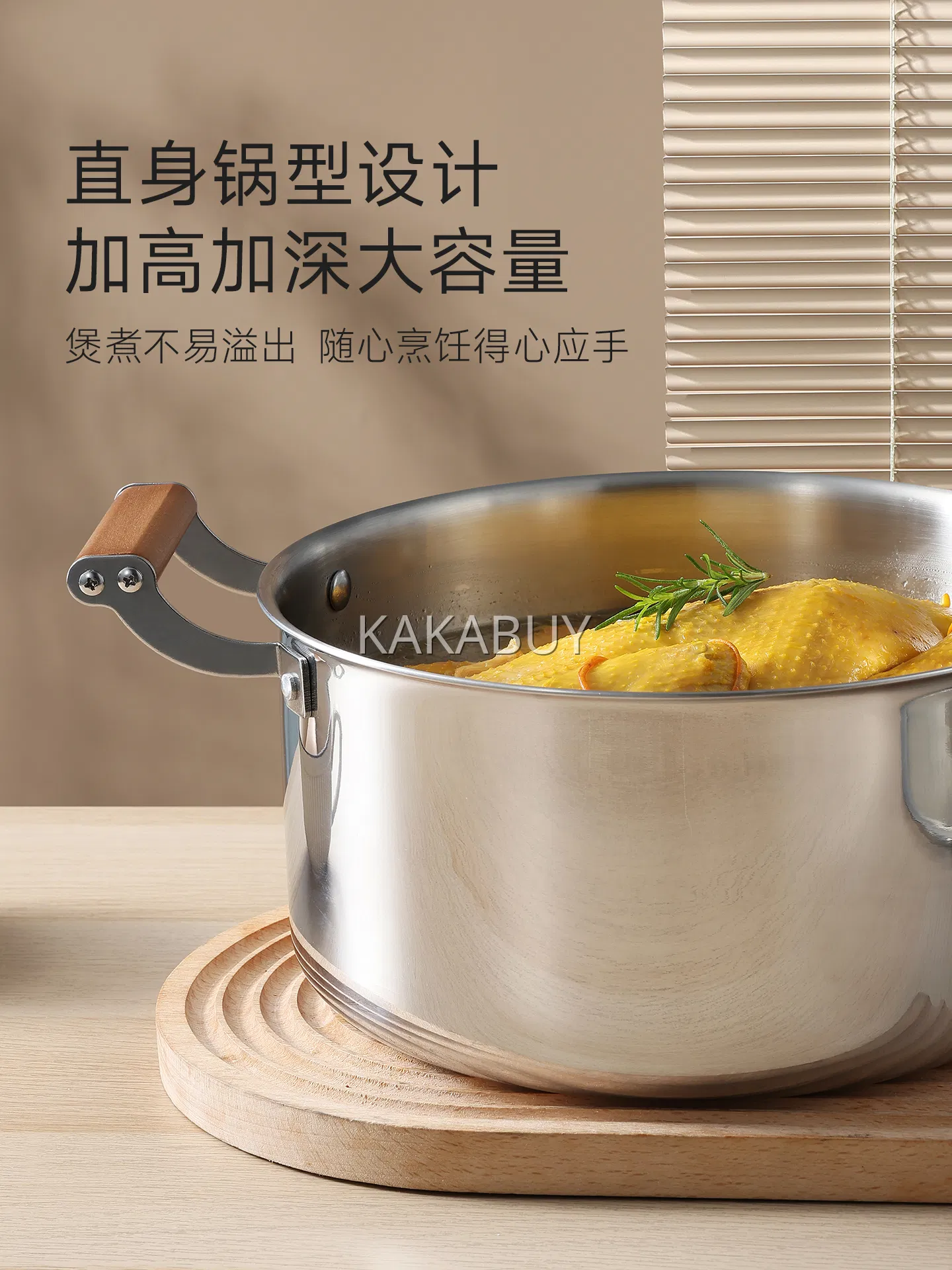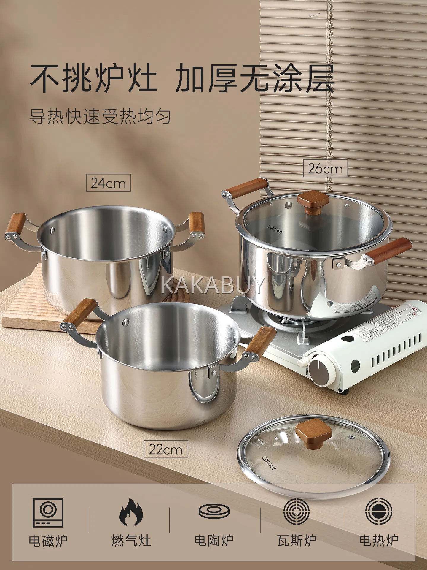 Carote卡罗特 304不锈钢木柄蒸锅 三层