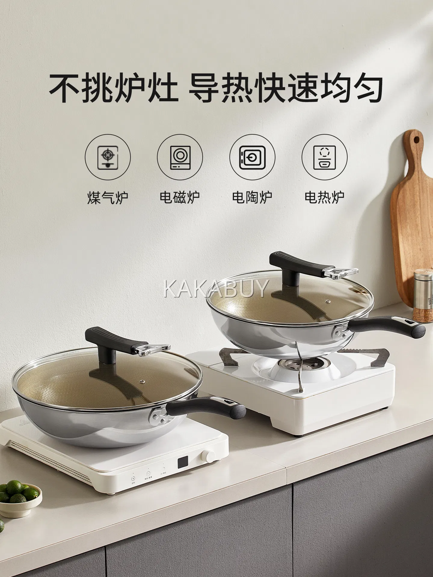 Carote卡罗特 有钛不粘小炒锅 带盖 多款选