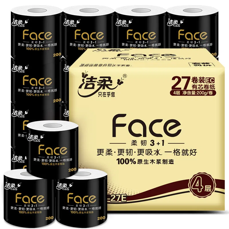 【整箱·27卷】洁柔 黑Face系列 有芯卷纸 200g*27卷入