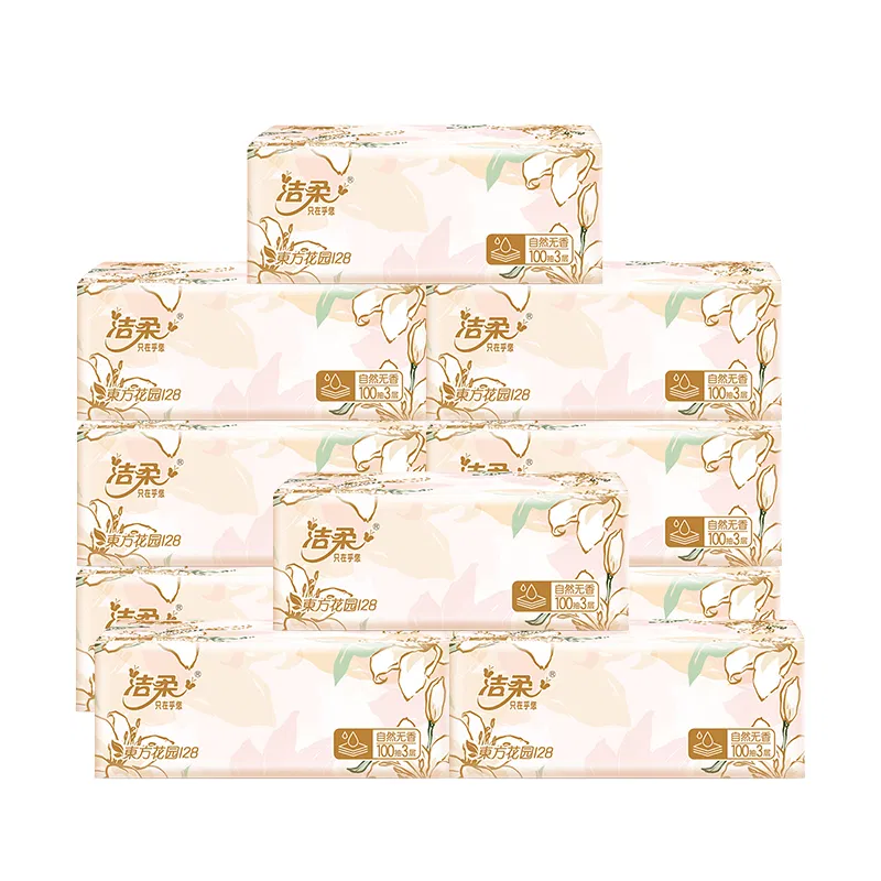 【10包】洁柔 东方花园系列 软抽纸面巾 100抽*10包