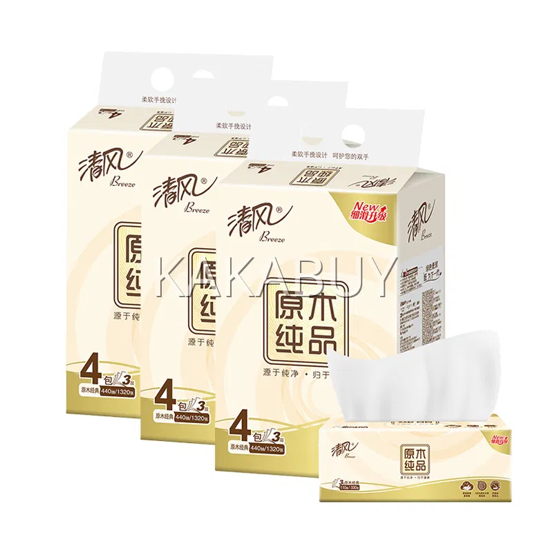 【4提·12包】清风 原木纯品系列 软抽面巾纸 S码 200抽*3包*4提入