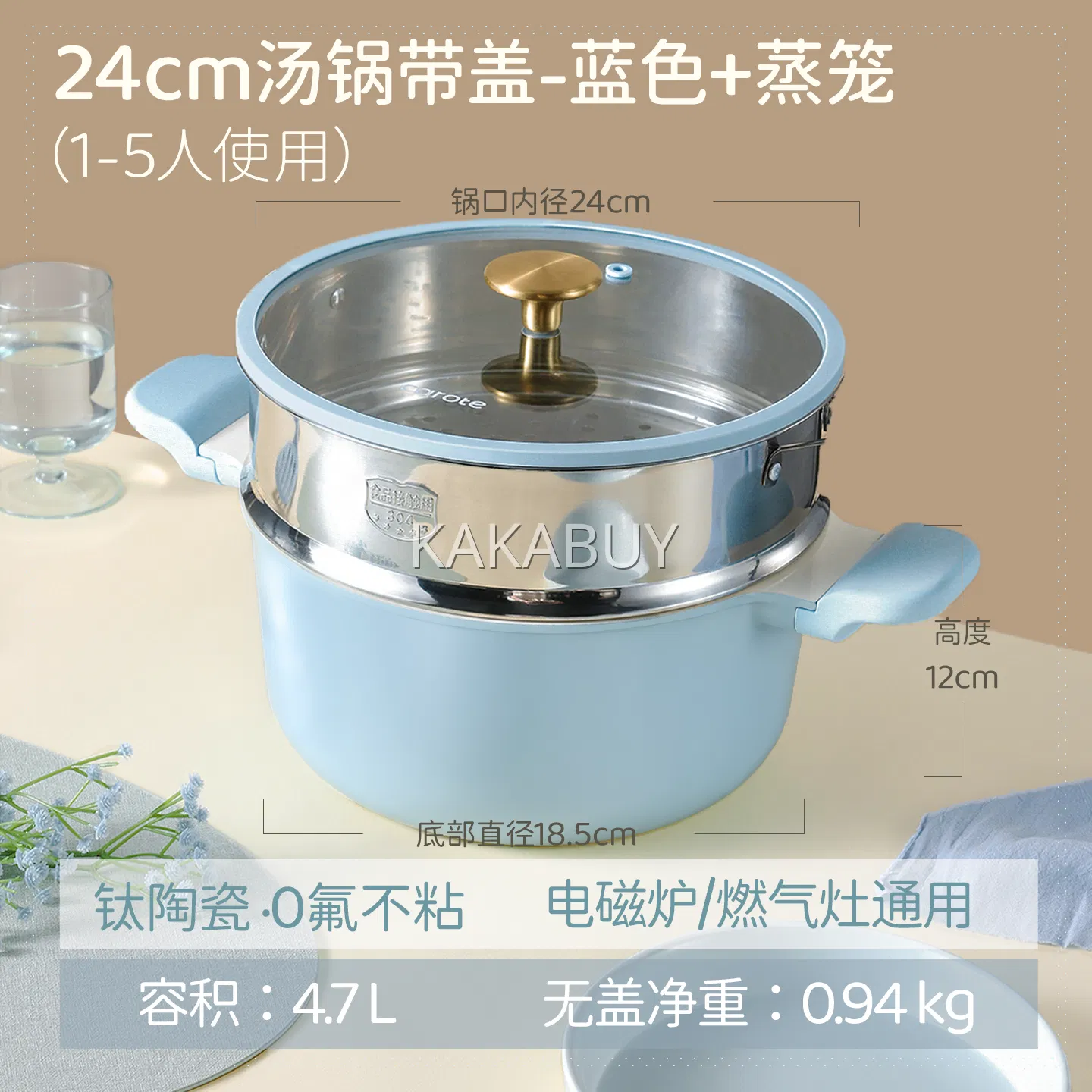 Carote卡罗特 COSY陶瓷有钛汤锅 带蒸笼 24cm