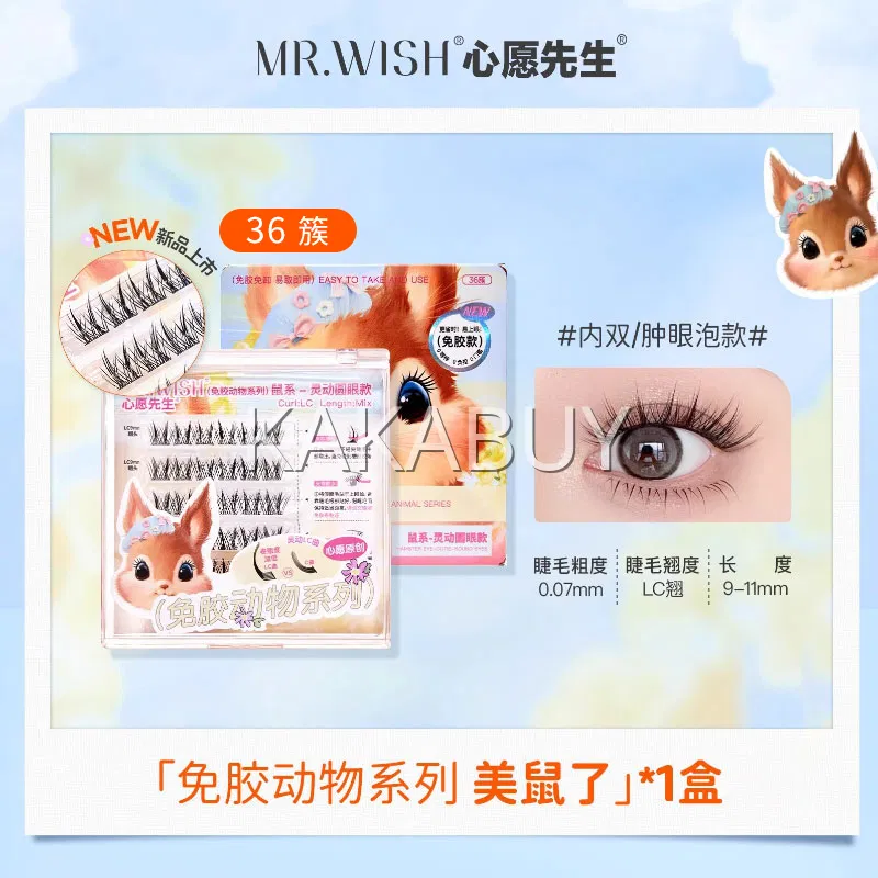 MR.WISH心愿先生 免胶动物系列2.0 鼠系单簇分段式假睫毛 美鼠了 灵动圆眼款 上睫毛 2排
