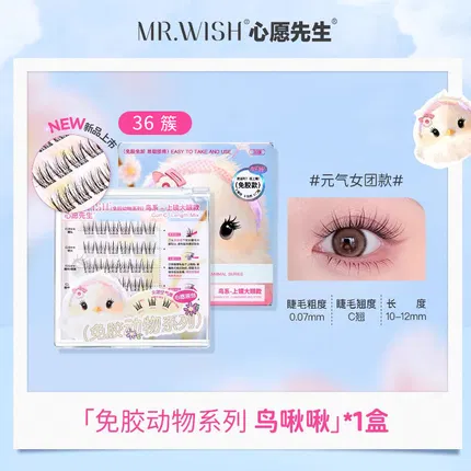 MR.WISH心愿先生 顽皮动物系列2.0 胶水款鸟系单簇分段式假睫毛 鸟啾啾 上镜大眼款 上睫毛 8排