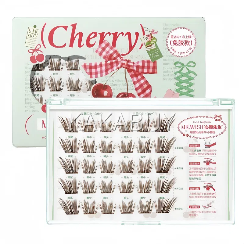 MR.WISH心愿先生 免胶系列 清透燕尾纱无梗单簇分段式假睫毛 上睫毛 6排