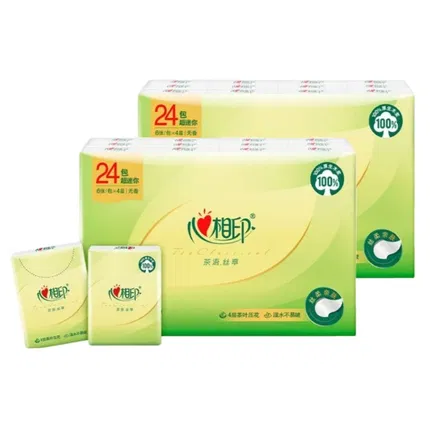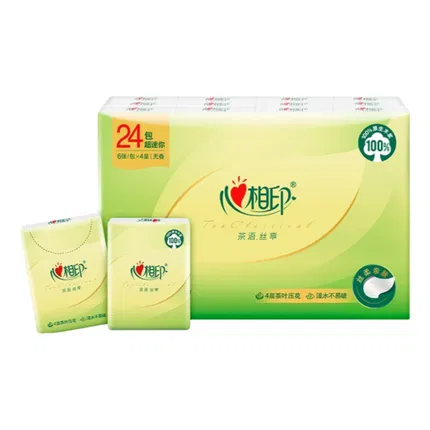 【整箱·24包·S码·2400抽】心相印 茶语经典系列 软抽面巾纸 清新茶香 S码 100抽*24包入