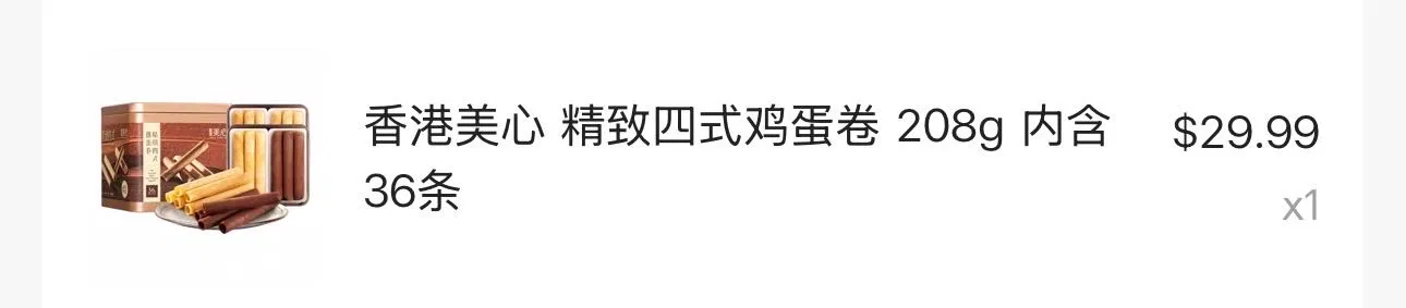 香港美心 精致原味鸡蛋卷 208g 内含36条