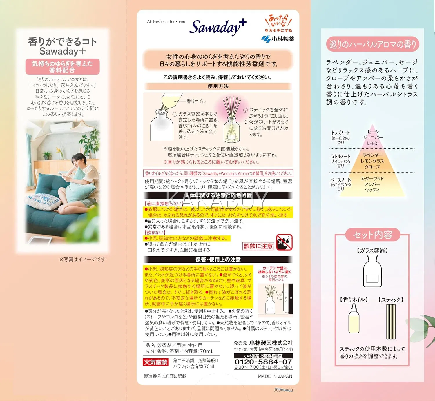 日本KOBAYASHI小林制药 Sawaday 天然花香系列 扩香剂 #AROMATIC FLORAL 芬芳花香 70ml