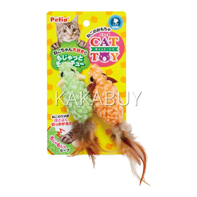 日本Petio派地奥 猫咪啃咬玩具 绒毛绿雀款