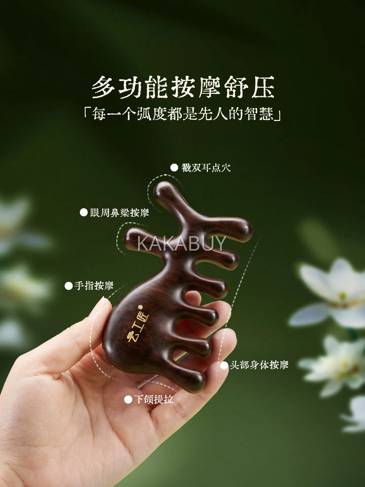 云工匠 绿檀木多功能经络按摩梳