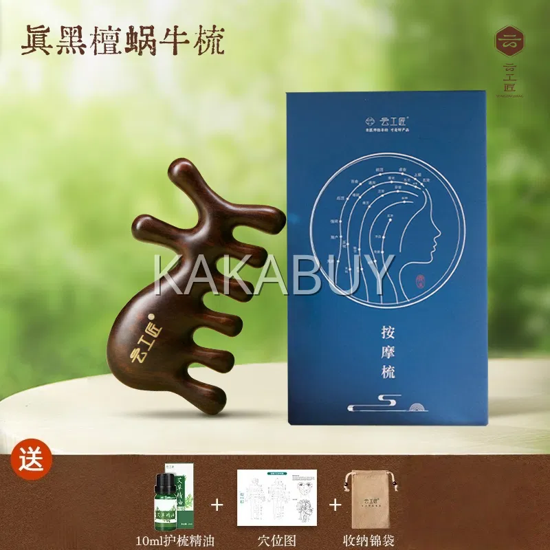 云工匠 黑檀牛角拨筋按摩梳