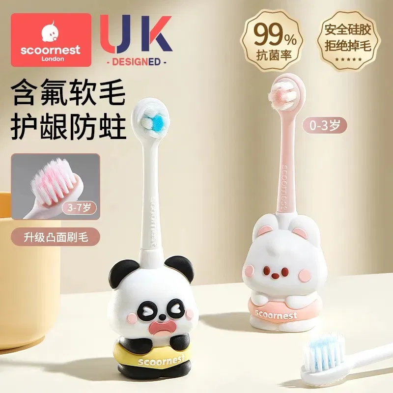 包装瑕疵丨SCOORNEST科巢 儿童含氟抑菌牙刷 伊文熊猫 不含收纳盒