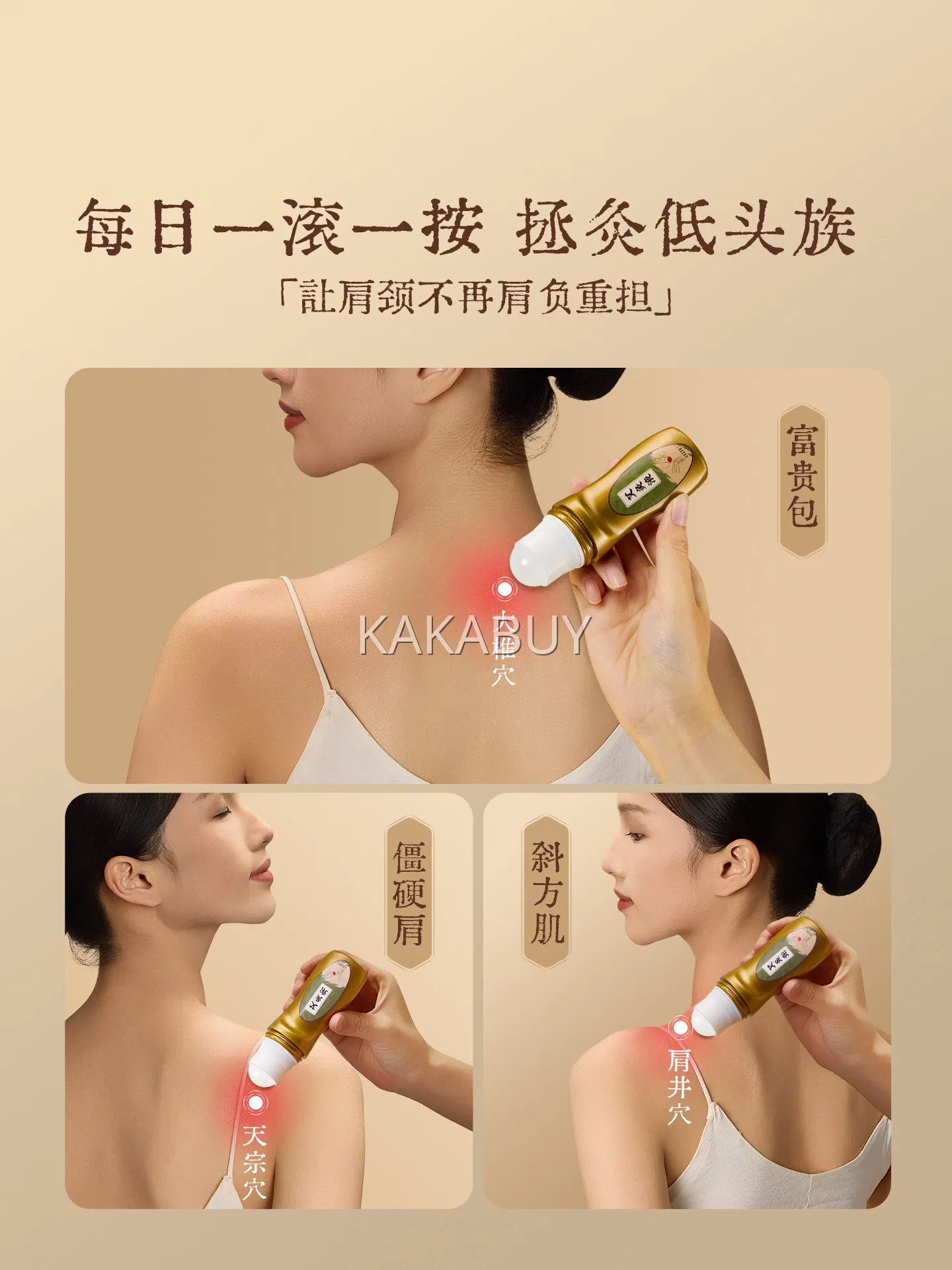 云工匠 榉木滚轮按摩棒 棕色 赠精油