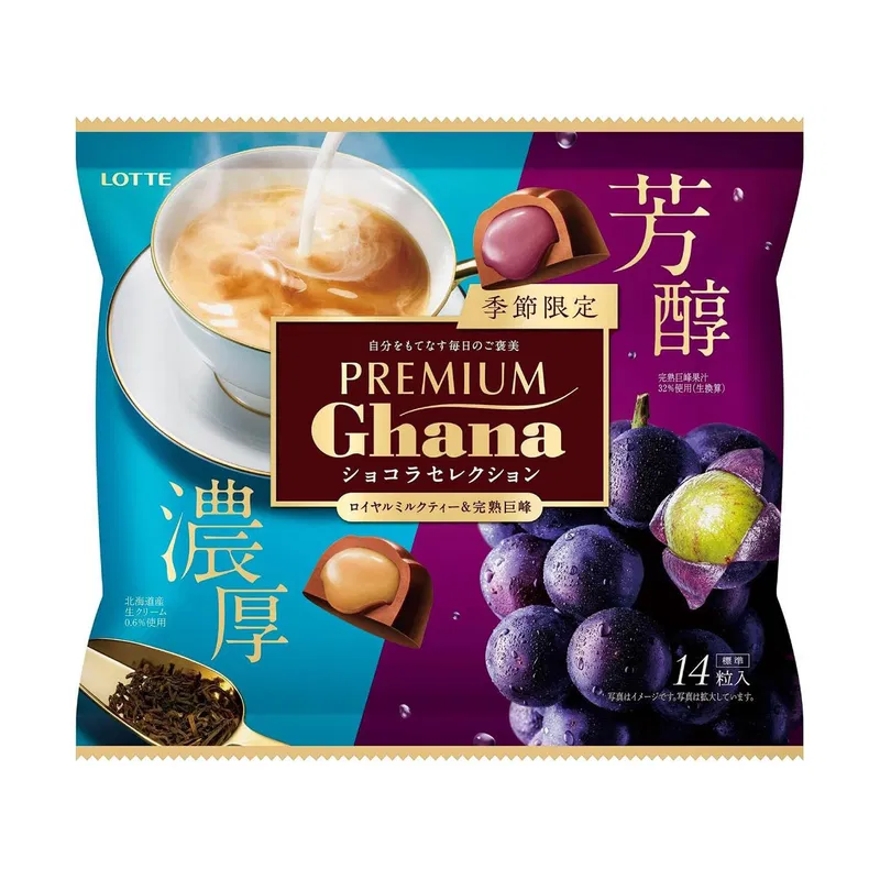 【季节限定】日本LOTTE乐天 PREMIUM Ghana 皇家奶茶巨峰葡萄夹心巧克力 内含14粒