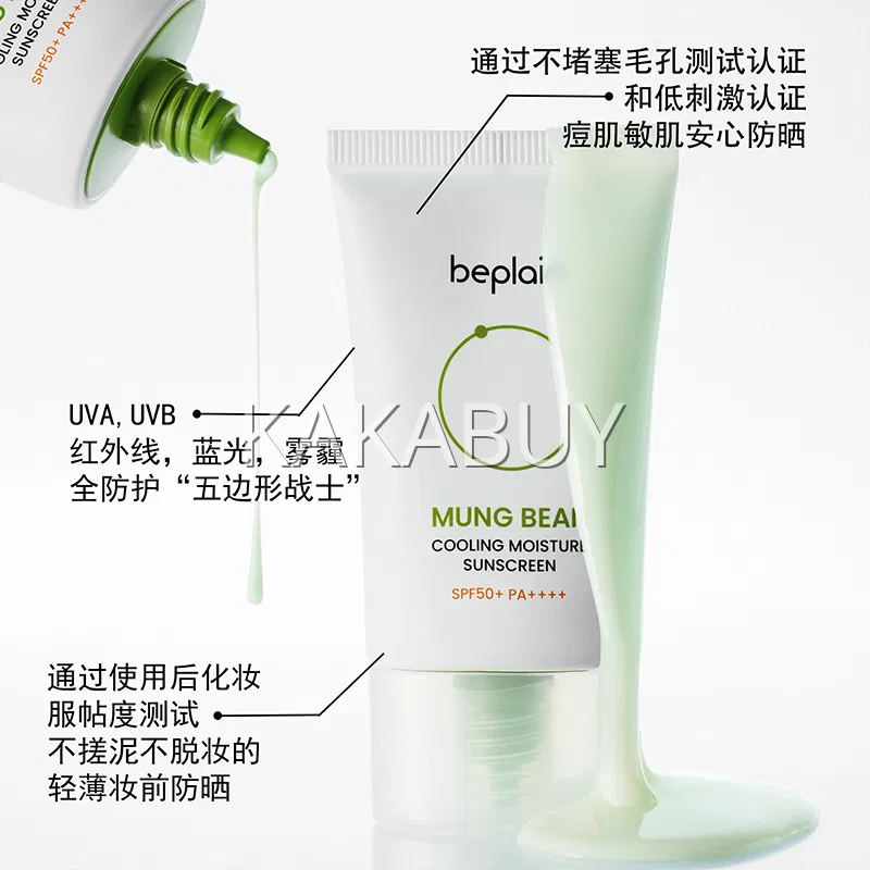 韩国beplain碧菲音 绿豆冰感水润防晒霜 SPF50+ PA++++ 50ml