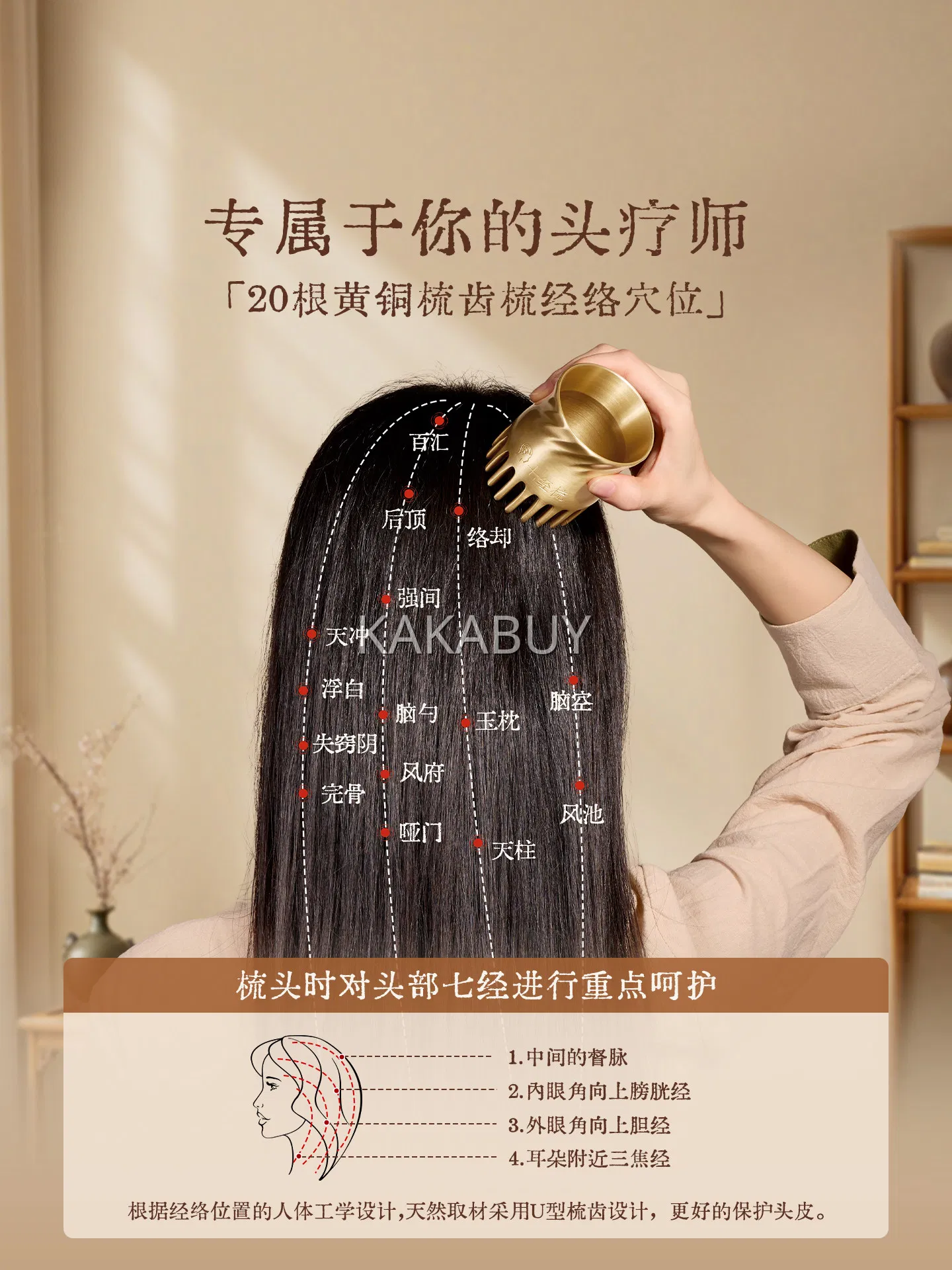 云工匠 黄铜经络按摩刷 29齿 赠老姜精油