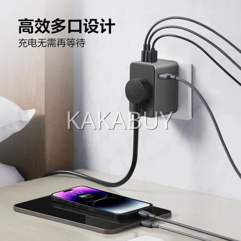 BULL公牛 100W大功率快充插座 3插位+2Type-C+2USB 总控 全长1.5m 赠快充数据线 卵石灰 GNV-MC1103