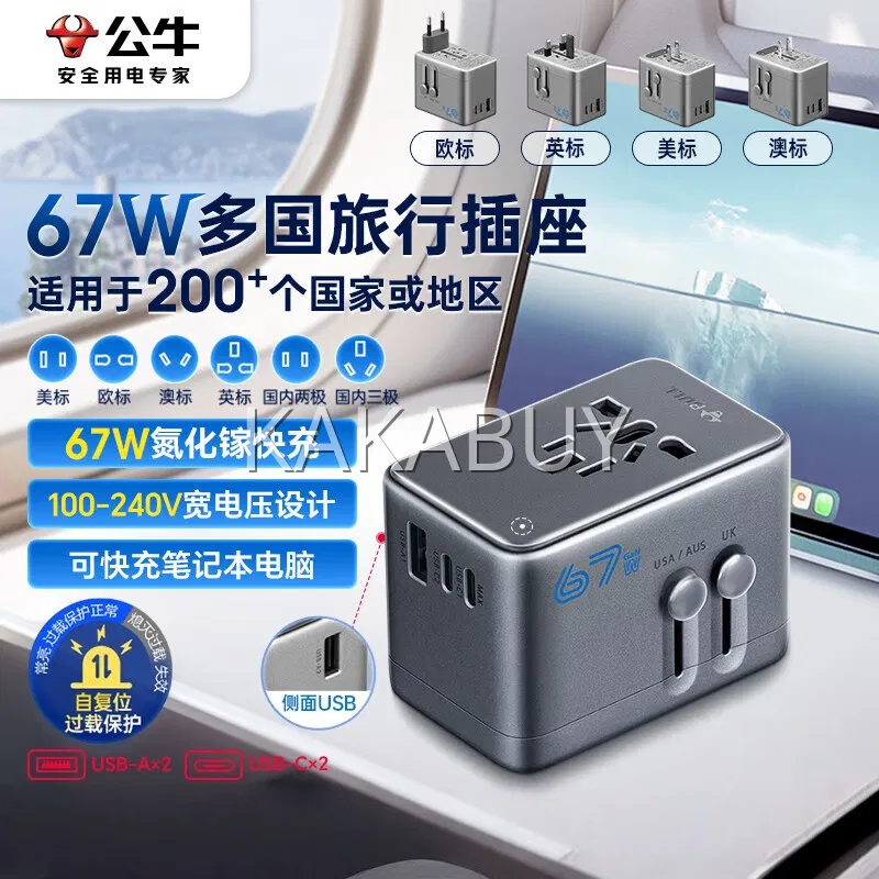 BULL公牛 全球旅行转换器 远山灰 GN-L10U15