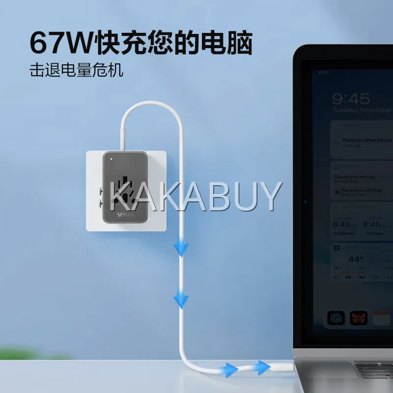 BULL公牛 67W大功率快充插座 3插位+2USB+2Type-C 总控 全长1.5m GNV-MC1673 卵石灰