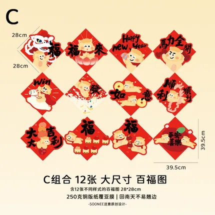 Soonee送意 2026马年福字套装 28*28cm 赠纳米胶 多款选