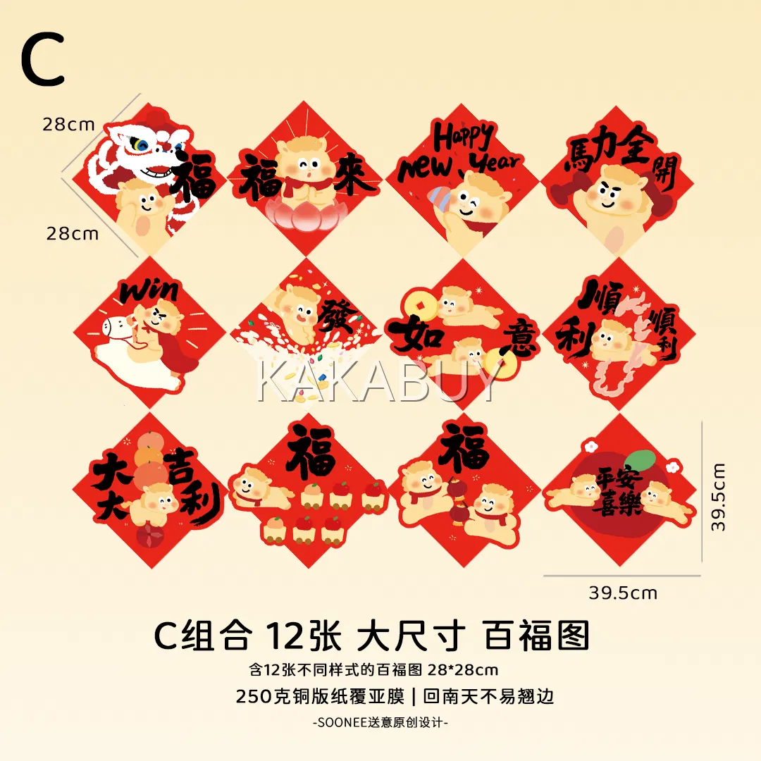 Soonee送意 2026小黄马对联福字套装 赠纳米胶 多款选