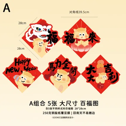 Soonee送意 2026马年趣味对联福字套装 赠纳米胶 多款选
