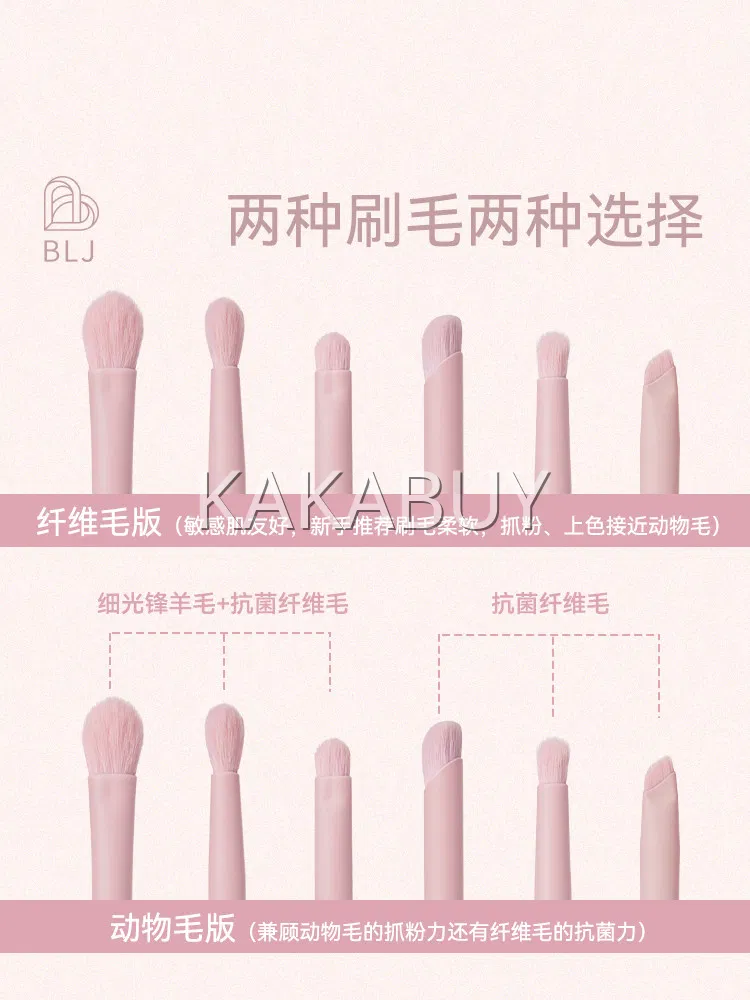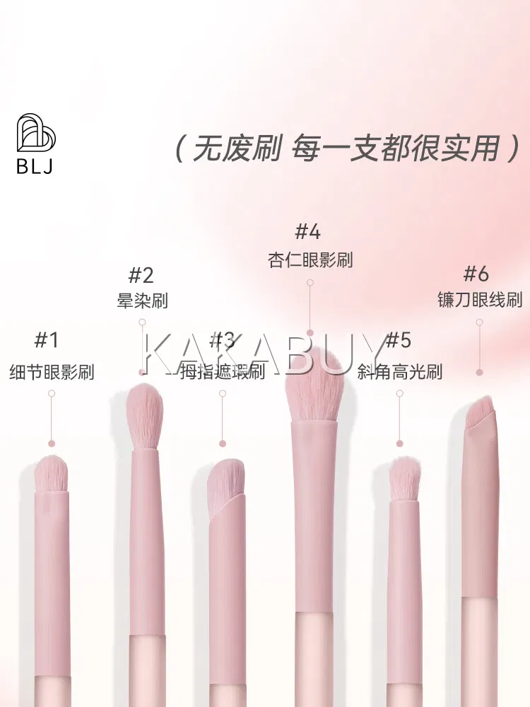 BLJ标记 半糖蜜桃系列 眼部化妆套刷 纤维毛款 6支 赠刷包